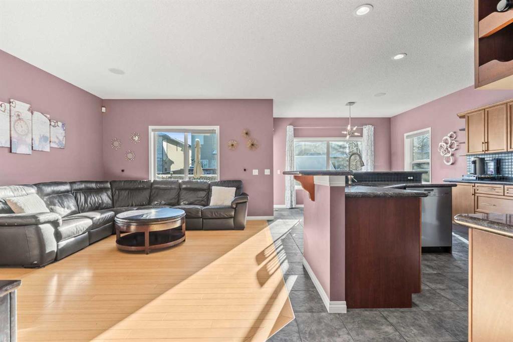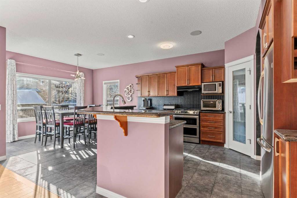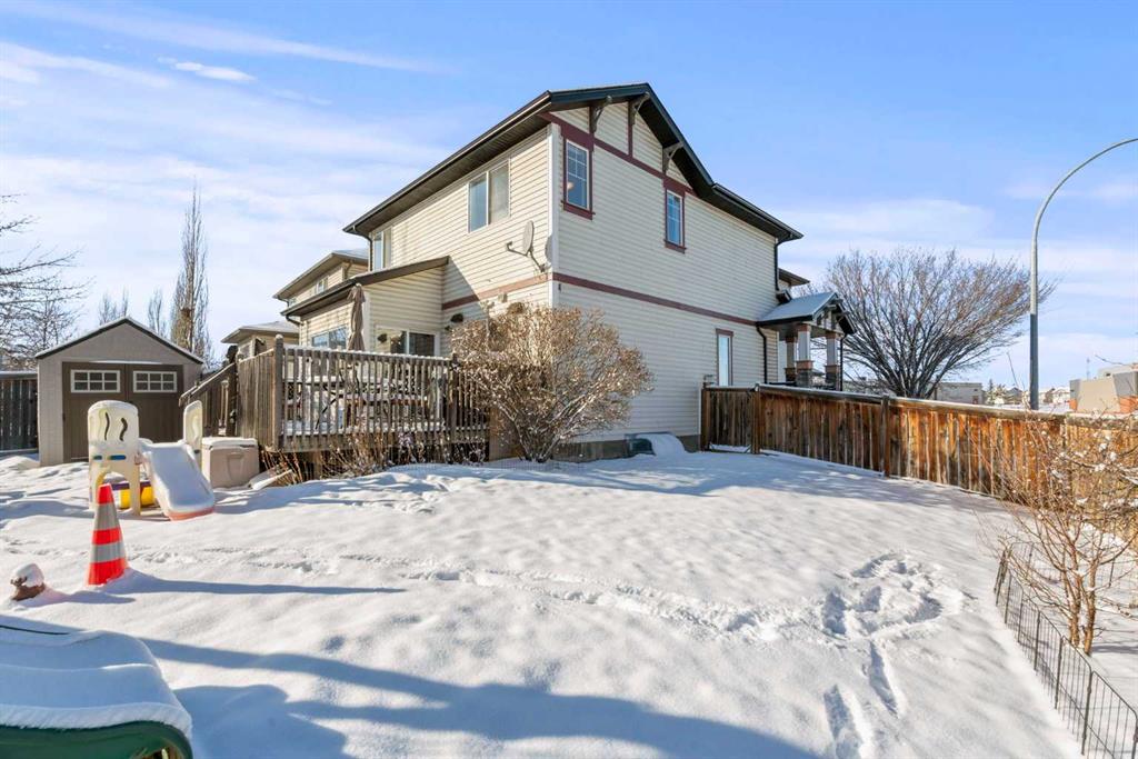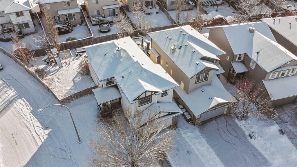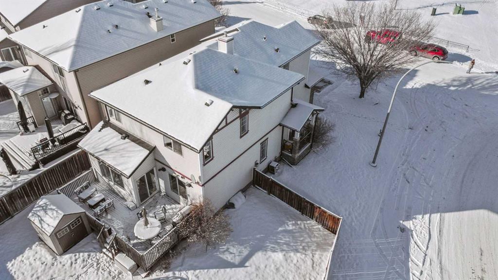 Welcome to this beautifully maintained 3+1 bedroom, 3.5 bathroom two-storey home in the sought-after lake community of Chaparral in Calgary’s southeast, offering space, comfort, and year-round lifestyle perks for the whole family. Step inside to a bright and functional main floor featuring a combination of tile and hardwood flooring. At the front of the home, a versatile flex room provides the perfect space for a home office, playroom, or cozy sitting area. The back of the home opens into a welcoming great room layout, where the living, kitchen, and dining areas flow seamlessly together — ideal for both everyday living and entertaining. The living room is anchored by a corner gas fireplace, while large windows fill the space with natural light. The kitchen is designed with both style and practicality in mind, offering granite countertops, stainless steel appliances, a central island with raised breakfast bar, and a corner pantry for extra storage. From the dining area, doors lead directly to the backyard, making summer BBQs and indoor-outdoor living a breeze. A convenient 2-piece powder room completes the main level. Upstairs, you’ll find three spacious bedrooms, including a relaxing primary retreat with a walk-in closet and a luxurious 5-piece ensuite featuring a soaking tub — the perfect place to unwind at the end of the day. Two additional bedrooms share a well-appointed 4-piece bathroom. This level also includes upper floor laundry and a generous bonus room, ideal for movie nights or a kids’ hangout space. The fully finished basement adds even more living space with a fourth bedroom, a rec room with double doors, another 4-piece bathroom, and plenty of storage and utility space. Situated on a corner pie-shaped lot, the outdoor space is just as impressive. The large backyard features a deck, storage shed, and plenty of room for kids and pets to play. Living in Chaparral means enjoying Lake Chaparral’s 4-season amenities, including swimming, skating, and year-round community events. With schools, parks, and pathways within walking distance, plus convenient access to shopping and major routes via Stoney Trail and Macleod Trail, this location truly has it all. This is the perfect blend of space, function, and lifestyle in one of Calgary’s most desirable lake communities.