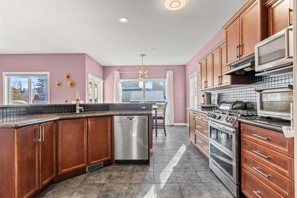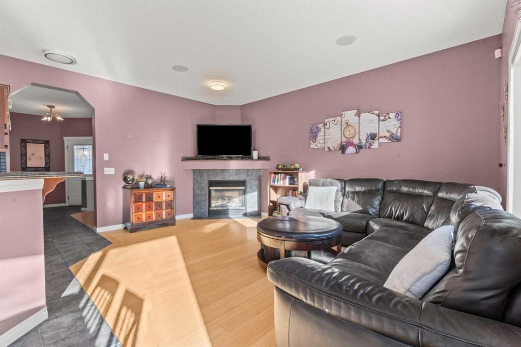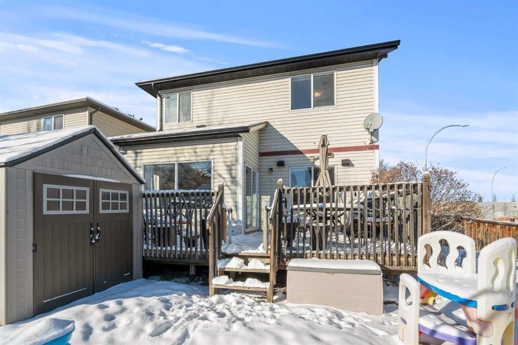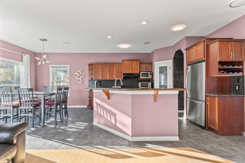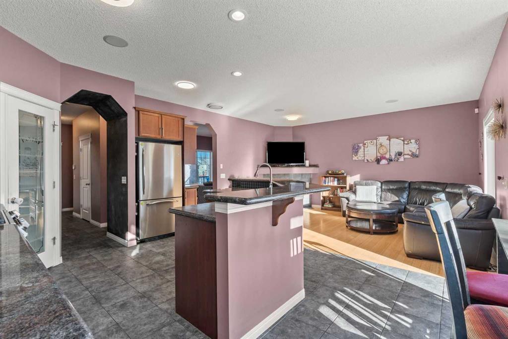 Welcome to this beautifully maintained 3+1 bedroom, 3.5 bathroom two-storey home in the sought-after lake community of Chaparral in Calgary’s southeast, offering space, comfort, and year-round lifestyle perks for the whole family. Step inside to a bright and functional main floor featuring a combination of tile and hardwood flooring. At the front of the home, a versatile flex room provides the perfect space for a home office, playroom, or cozy sitting area. The back of the home opens into a welcoming great room layout, where the living, kitchen, and dining areas flow seamlessly together — ideal for both everyday living and entertaining. The living room is anchored by a corner gas fireplace, while large windows fill the space with natural light. The kitchen is designed with both style and practicality in mind, offering granite countertops, stainless steel appliances, a central island with raised breakfast bar, and a corner pantry for extra storage. From the dining area, doors lead directly to the backyard, making summer BBQs and indoor-outdoor living a breeze. A convenient 2-piece powder room completes the main level. Upstairs, you’ll find three spacious bedrooms, including a relaxing primary retreat with a walk-in closet and a luxurious 5-piece ensuite featuring a soaking tub — the perfect place to unwind at the end of the day. Two additional bedrooms share a well-appointed 4-piece bathroom. This level also includes upper floor laundry and a generous bonus room, ideal for movie nights or a kids’ hangout space. The fully finished basement adds even more living space with a fourth bedroom, a rec room with double doors, another 4-piece bathroom, and plenty of storage and utility space. Situated on a corner pie-shaped lot, the outdoor space is just as impressive. The large backyard features a deck, storage shed, and plenty of room for kids and pets to play. Living in Chaparral means enjoying Lake Chaparral’s 4-season amenities, including swimming, skating, and year-round community events. With schools, parks, and pathways within walking distance, plus convenient access to shopping and major routes via Stoney Trail and Macleod Trail, this location truly has it all. This is the perfect blend of space, function, and lifestyle in one of Calgary’s most desirable lake communities.