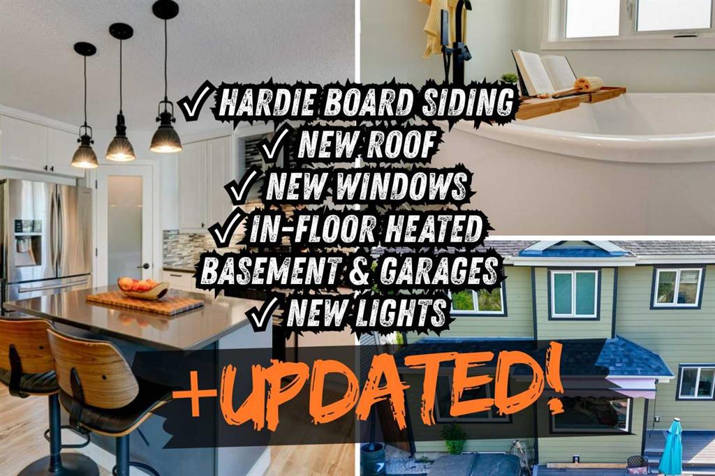 Rare Lake Chaparral opportunity with TWO oversized heated double garages, one front attached and one rear detached. Over 2,450 sq ft of developed space, with major exterior upgrades already done: Hardie Board siding, New Roof, New windows and doors. In-floor heat in the basement and both garages plus A/C for summer comfort. Functional layout with open main floor, generous kitchen workspace with under-cabinet lighting and built-in microwave, corner gas fireplace, bonus room, upper laundry, 3 bedrooms up, flex room down and 4 total bathrooms. Sunny west-facing yard with composite deck and low-maintenance landscaping. Just one block to lake access and walking distance to two schools, parks and pathways, with quick access to shopping, Fish Creek, golf and transit. A standout for buyers who need rare, heated garage space to build, store, create, or run a home business, with year-round Lake Chaparral living at your doorstep.