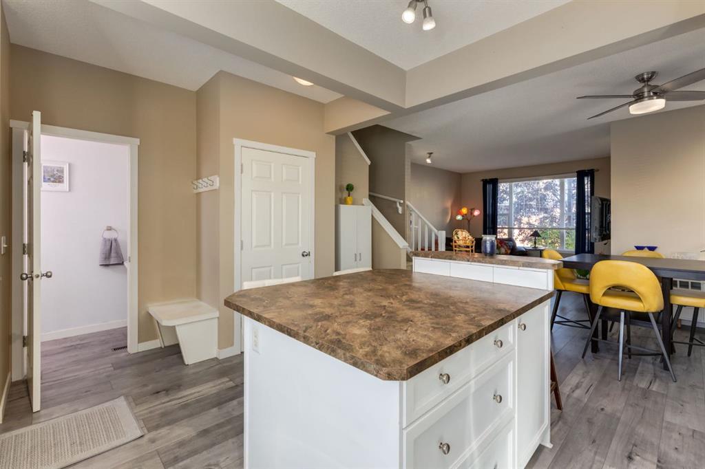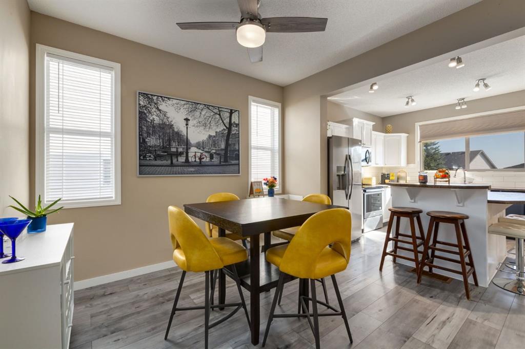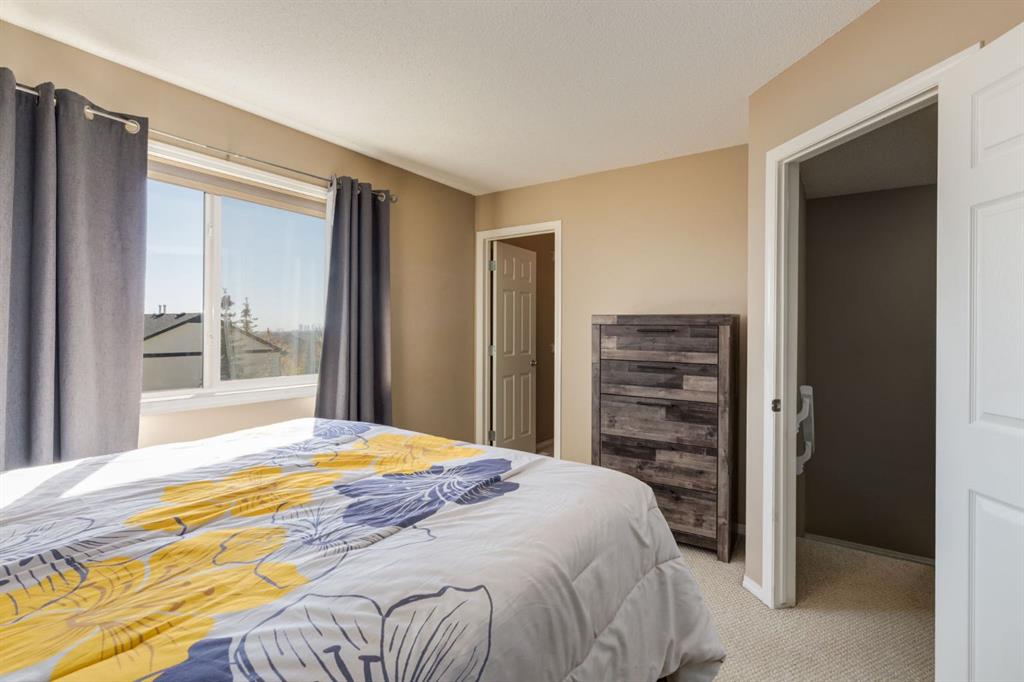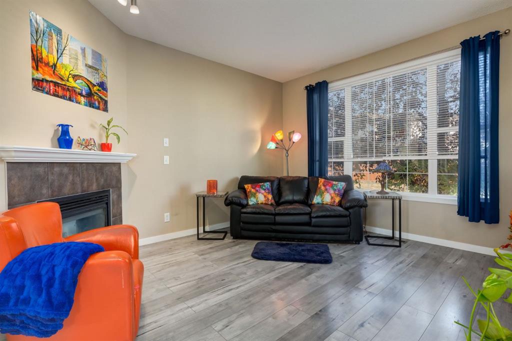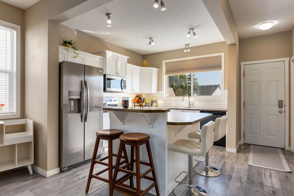 Honey Stop the Car!!! This is the one! — A beautifully updated semi-detached home in the heart of Coventry Hills offering style, comfort, and everyday functionality. Step inside to a bright, inviting main floor where modern grey laminate flooring flows throughout an open-concept layout. The cozy gas fireplace with tile surround creates a warm focal point for family gatherings, while large front windows fill the space with natural light. The kitchen has been refreshed with painted white cabinetry, a new tile backsplash, and newer stainless-steel appliances. The central island with seating for four is perfect for casual dining or entertaining, and the adjoining dining area offers plenty of space for family meals and conversation. A convenient half bath completes the main level. Upstairs, discover three comfortable bedrooms, including a spacious primary suite with excellent closet space and easy access to the full bathroom. The lower level provides plenty of potential to expand your living space, with a bathroom rough-in already in place and ample room to create a future recreation area, gym, or guest suite to suit your needs. Peace of mind comes with recent updates — a new roof on the house and refreshed siding enhance curb appeal and long-term durability, while a newer hot water tank (installed 2021) ensures energy efficiency. The laundry area includes LG front-loading machines plus a stand-alone freezer that will stay with the home. Step outside to enjoy your southeast-facing backyard, ideal for morning coffee, gardening, or summer barbecues. The double detached garage provides secure parking and additional storage. Ideally located— within walking distance to nearby schools, parks, and playgrounds, and just minutes to shopping, transit, and the Trico Centre for Family Wellness. With easy access to Deerfoot and Stoney Trail, commuting across the city is simple and convenient. Whether you’re a first-time buyer, down sizer, or investor, this thoughtfully maintained home offers an exceptional opportunity to own in one of Calgary’s most family-friendly communities. Warm, welcoming, and move-in ready