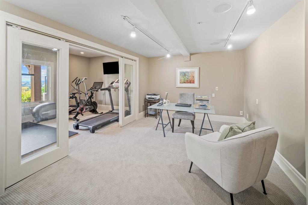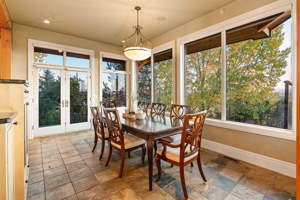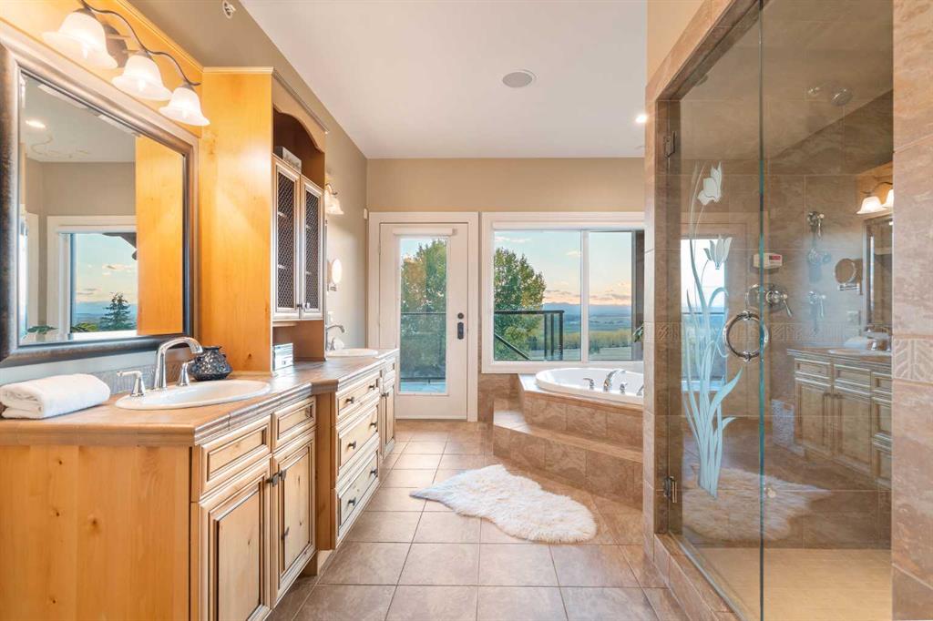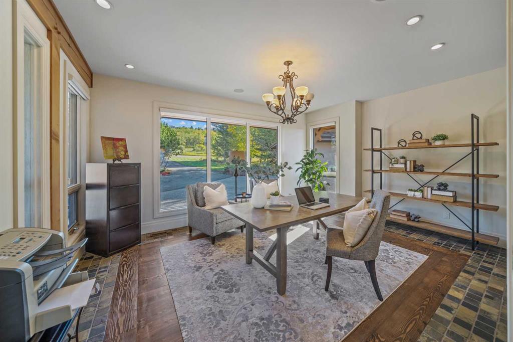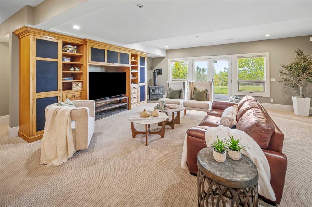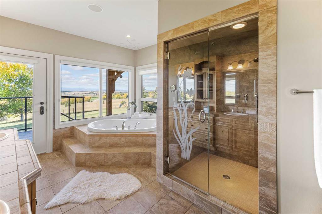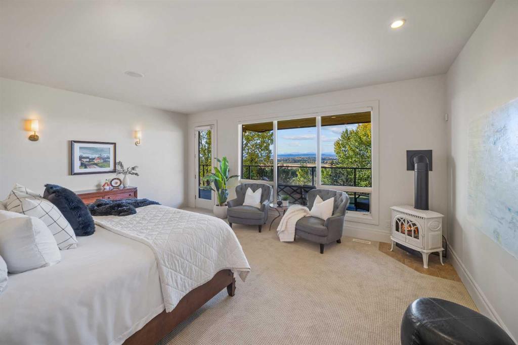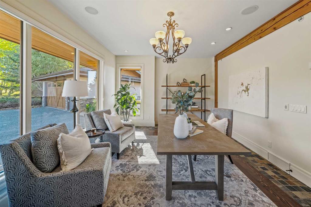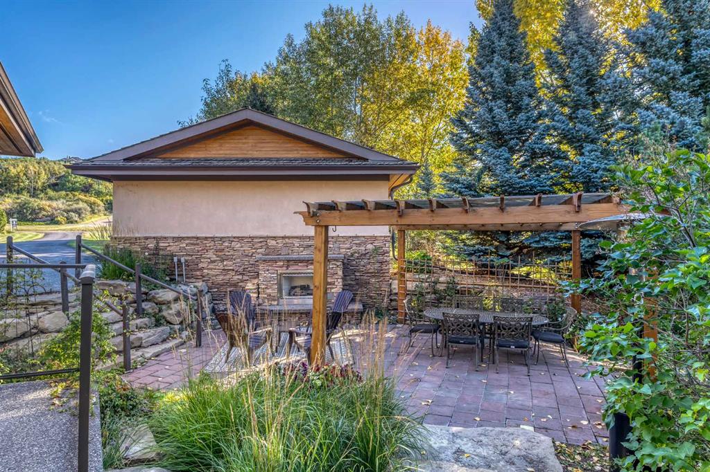 Introducing the Iconic Mountain View Estate – a landmark residence perched high in a premier Springbank location, embodying the very essence of elevated country living. Positioned gracefully on two pristine acres, this mountain-inspired walkout bungalow commands sweeping, unobstructed vistas of the Rocky Mountains, rolling foothills, and ever-changing prairie skies. From tranquil dawns to fiery alpine sunsets and dramatic summer lightning displays, every moment is framed by nature’s grandeur. Blending timeless architecture with authentic natural materials, the home radiates warmth and sophistication. Timber beams, cathedral-style vaulted ceilings, stone, slate, and wide-plank hardwood reflect the surrounding landscape, while wrought-iron details and artistic accents bring character and craftsmanship to every space. Each room is intentionally designed so that every window becomes a picture frame of the mountains set beyond. At the heart of the home, the Great Room creates a lasting impression. Towering timber frames, soaring ceilings, and a dramatic full-height stone fireplace create an atmosphere both grand and inviting. French doors lead to a spacious upper terrace where endless foothill and mountain panoramas inspire gatherings and quiet reflection alike. The chef’s kitchen is equally striking, anchored by a generous island with a curved eating counter, appointed with rich, custom Alder cabinetry, granite counters, and a professional six-burner gas range beneath a hand-crafted copper hood. Designed for both function and beauty, it flows seamlessly into the dining room, which opens onto a private courtyard. Here, an outdoor pergola dining area and lounge centered on a stone-clad fireplace provide an idyllic setting for morning coffee or intimate evening entertaining under the stars. The main level also offers a light-filled private office with French doors, a serene primary suite with spa-inspired finishes, and a well-appointed mudroom and laundry with ample storage. On the walkout lower level, expansive windows and radiant in-floor heating extend the lifestyle year-round. A spacious family/TV room, a custom-built wet bar and games area create space for both relaxation and entertainment. Three additional bedrooms, including one designed as a dual office and gym, are complemented by two full bathrooms. The estate’s grounds are equally considered. A circular front driveway, lined with mature trees and landscaped gardens, creates a true sense of arrival. Multiple outdoor living areas encourage year-round enjoyment, while car enthusiasts and hobbyists will appreciate four oversized heated garage spaces – attached and detached – seamlessly integrated with the architectural design. The Iconic Mountain View Estate is far more than a residence – it is a statement of style and sanctuary. A perfect harmony of mountain-inspired architecture, breathtaking natural beauty, and refined country living – it offers privacy, luxury, and inspiration every day.