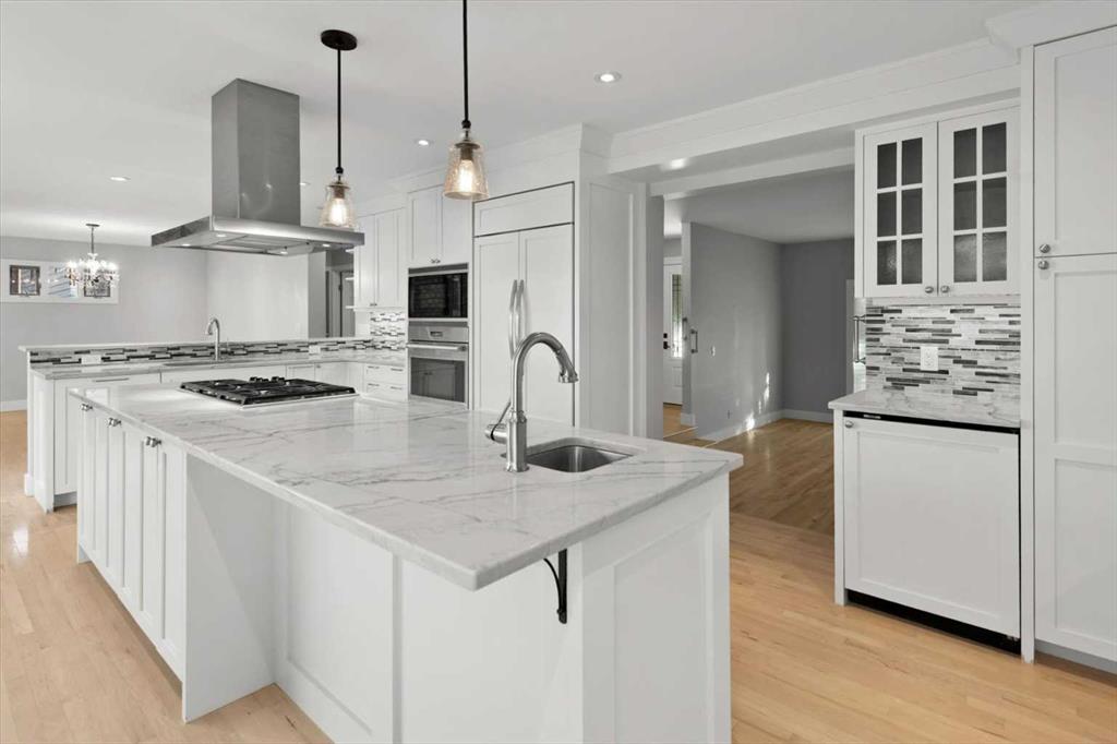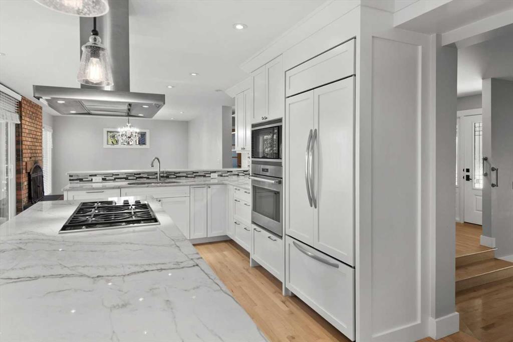 Beautiful 2 storey family home with triple car garage in the sought after community of Oakridge, just steps to South Glenmore Park and the Glenmore Reservoir. A spacious foyer welcomes you into a bright main level with gleaming hardwood floors and a generous living room. The luxurious renovated kitchen (2015) features a large island with quartz countertops, breakfast bar, and exceptional storage including soft-close drawers (approx. 20), corner organizer, and pullout pantry. Stainless steel appliances (2015) include an integrated-front refrigerator, dishwasher, and bar fridge, plus a gas cooktop with chimney-style hood fan, built-in wall oven and microwave. The kitchen overlooks the warm family room with a brick-faced wood-burning fireplace and views of the fully fenced backyard. The main floor also offers a convenient 2 pce. powder room and a functional mudroom with main-floor laundry. Upstairs you’ll find 4 spacious bedrooms and a renovated 4 pce. bath. The primary retreat includes a sitting area and 5 pce ensuite. The lower level includes a large workshop with storage shelves, a 5th bedroom/office and family room area. Updates include – Kitchen renovation ($100,000) cabinetry/island, quartz counters, soft-close drawers & pullouts, stainless appliances (2015), 2 sink areas, Upper level 4 pce bath renovated (2015), hardwood flooring throughout main (excluding back entrance & 2 pce. bath), hardwood up stairs continuing down the hall, primary bedroom and sitting area (2015) most windows replaced (2015–present), front door (2015), two upper level solar skylights (2015), primary balcony reconstructed (2020), cedar shake roof inspected (2024), furnace (2023), Furnace serviced (2025), Hot water tank replaced (Jan 2026), fence replaced. A wonderful family home with access to Stoney Trail SW and allows easy access to travel in all directions beyond the city limits.