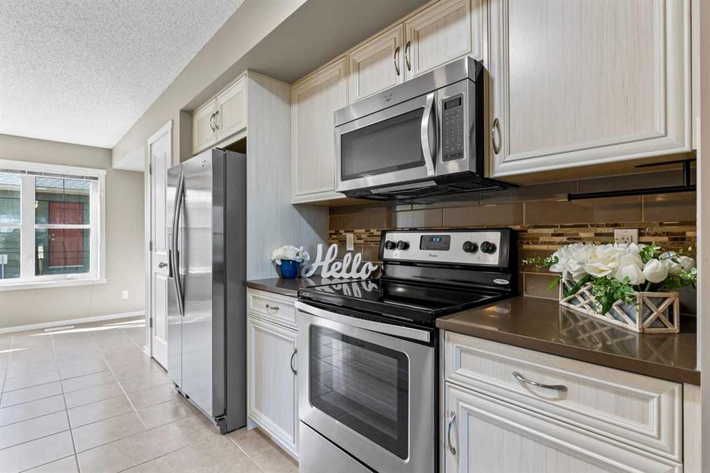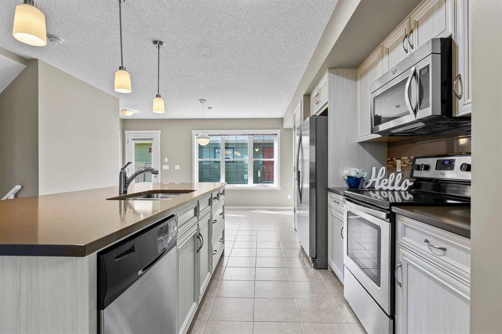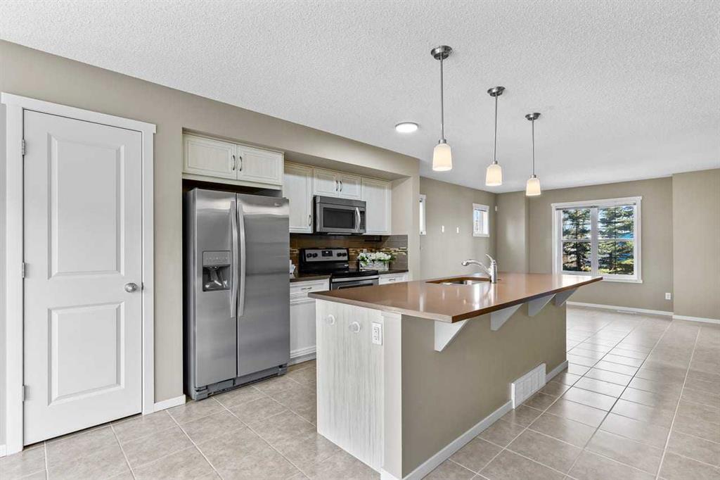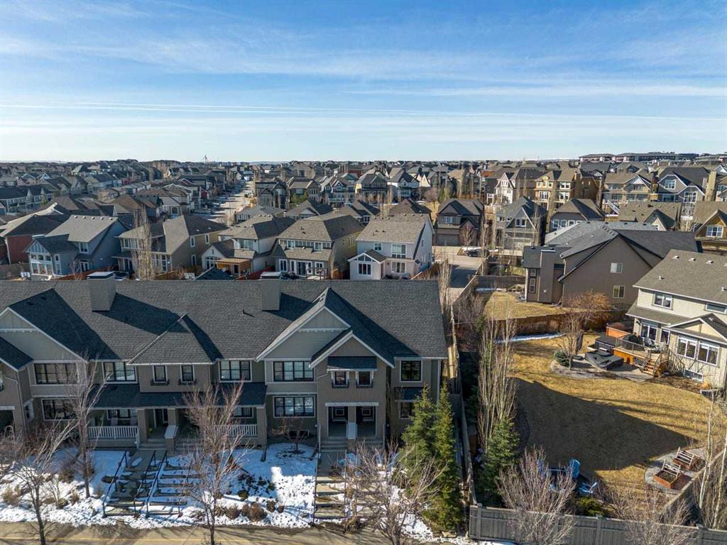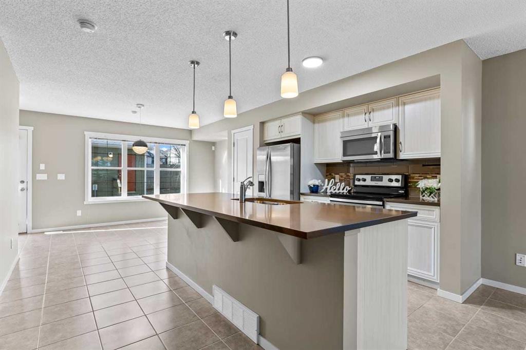 WELCOME TO THIS BEAUTIFUL END-UNIT TOWNHOUSE WITH DOUBLE GARAGE OFFERING OVER 2000 SQ.FT OF DEVELOPED LIVING SPACE in the DESIRABLE LAKE COMMUNITY OF MAHOGANY. This SPACIOUS 3 BEDROOM, 2.5 BATHROOM HOME is perfect for families or those seeking extra room to grow. The main floor features a BRIGHT OPEN-CONCEPT LAYOUT with durable TILE FLOORING throughout, creating a seamless and modern living space ideal for both everyday living and entertaining. The kitchen is the heart of the home, complete with a LARGE ISLAND, QUARTZ COUNTERTOPS, STAINLESS STEEL APPLIANCES, and a convenient PANTRY, perfect for home chefs and busy households alike. Upstairs, you’ll find 2 well-appointed bedrooms, with the primary complete with a 3 piece ensuite bathroom and walk-in closet. The FULLY DEVELOPED BASEMENT expands your living options with a generous recreation room, an ADDITIONAL BEDROOM, and a full 4 PIECE BATHROOM, ideal for guests, a home office, or a growing family. Enjoy outdoor living in your SOUTH FACING FENCED YARD, and take advantage of the DOUBLE GARAGE, which is fully drywalled and insulated for added comfort and functionality year-round. Located within WALKING DISTANCE OF 2 SCHOOLS and just moments from parks, playgrounds, shopping, restaurants, profession services and the privilege of Mahogany’s LAKE ACCESS, this home offers an unbeatable lifestyle in one of Calgary’s premier communities. Don’t miss your opportunity to live in a vibrant, family-friendly neighborhood WHERE LIFESTYLE AND CONVENIENCE COME TOGETHER AND YEAR-ROUND AMENITIES RIGHT AT YOUR DOORSTEP.