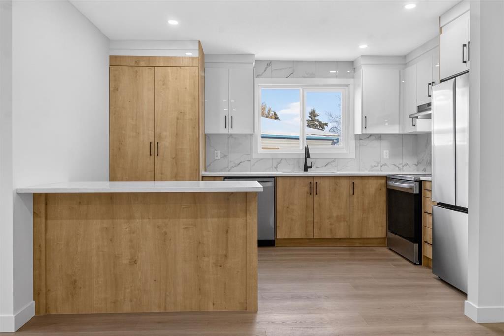 | FULLY RENOVATED | 5 BEDROOMS | 2.5 BATHROOMS | 2 LAUNDRIES | LIVE UP/RENT DOWN | Welcome to your extensively renovated home on a quiet street in the amenity rich community of Pineridge. This home has undergone a complete transformation that combines modern living and exceptional functionality. Quality craftsmanship and high-end finishes are exemplified throughout the renovations which include NEW WINDOWS, NEW LVP FLOORING, TWO-TONE HIGH GLOSS CABINETS, QUARTZ COUNTERTOPS, UPDATED ELECTRICAL AND PLUMBING, KNOCKDOWN CEILINGS, NEW SIDING (front) and more! The main floor of this home features an open concept floor plan. The spacious living room flows beautifully into your dining area which is highlighted by a stylish accent wall. The stunning kitchen is a chefs dream with its large island, ample counterspace and BRAND-NEW STAINLESS-STEEL APPLIANCES. The sizable master bedroom features a large closet and 2-piece ensuite bathroom providing excellent functionality and privacy. Finishing up on the main floor, you’ll find 2 more generously sized bedrooms, a full 3-piece bathroom, your own laundry area and a massive deck, perfect for enjoying your morning coffee. Heading downstairs you’ll find an illegal BASEMENT SUITE with a separate entrance that is just as impressive as the upper floor. As you walk in the basement, you’re greeted by a massive living area which has large windows, flooding the space with natural light. Down the hall you’ll find another stunning kitchen with an abondance of counter space as well as a full 3-piece bathroom which has a luxurious tiled stand-up shower. Two spacious bedrooms, large closets and a second separate laundry area make this the ideal space for large families or potential renters. The spacious backyard is fully fenced offering privacy and plenty of room for your family to enjoy. Additionally, back here you’ll find a good-sized parking pad for your vehicles or RV. Located near parks, playgrounds, schools, shopping centres, restaurants, LRT train station and just a 15-minute drive to downtown, you don’t want to miss the opportunity to make this home yours! Book a showing with your favourite realtor today.