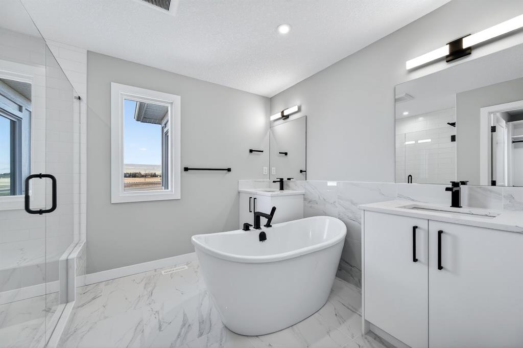 Upstairs, the luxurious primary suite includes a tray ceiling, spa-inspired 5-piece ensuite, and a generous walk-in closet, complemented by two additional bedrooms, a 4-piece bath, and convenient upper-level laundry. The lower level, with a separate side entrance, is ready for future development.