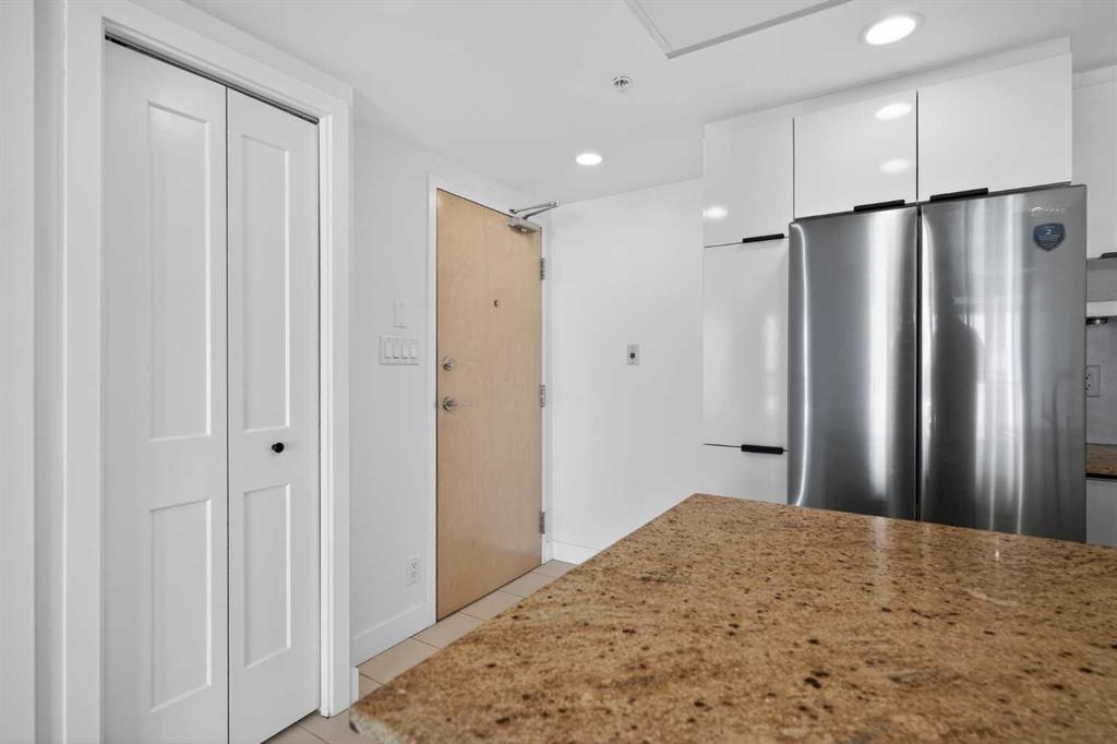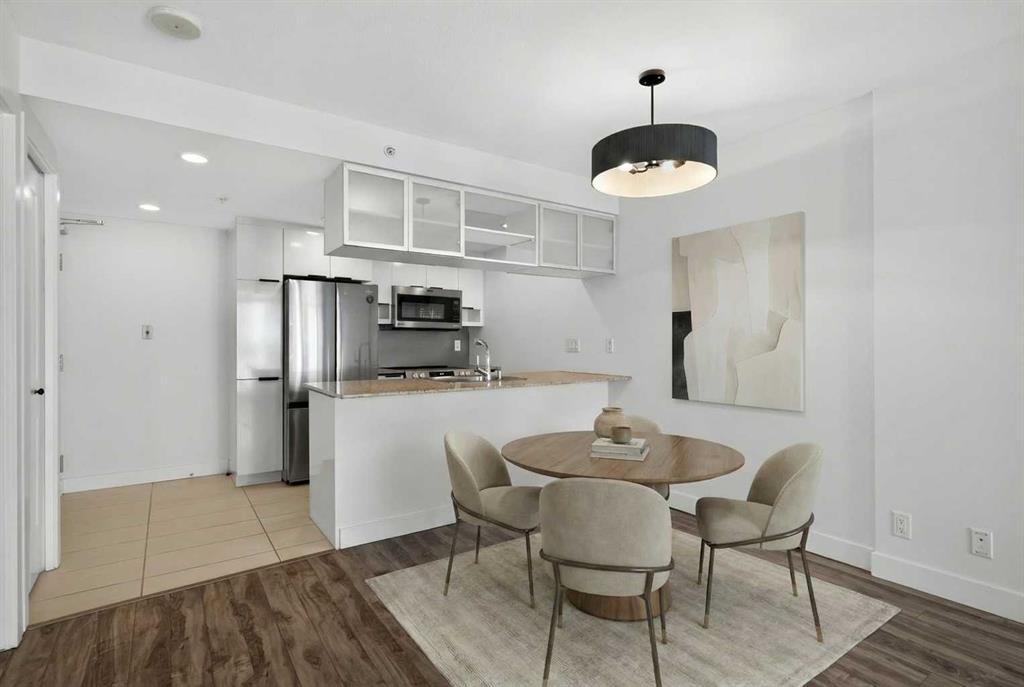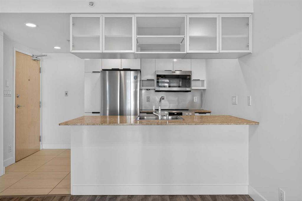 Experience elevated inner-city living in Stella, one of the Beltline’s most sought-after addresses. Perfectly positioned in the heart of the action, this beautifully refreshed suite offers a seamless blend of modern style and everyday comfort. Inside, you’ll find a bright, contemporary design highlighted by glossy white cabinetry, granite countertops, brand-new stainless steel appliances (including a new fridge, stove, and dishwasher), and upgraded laminate flooring that flows throughout the space. Freshly painted and completely move-in ready, the home also features central air conditioning and convenient in-suite laundry. Wake up each morning to beautiful south-facing city views from the bedroom. Stella offers an impressive array of amenities designed to complement your lifestyle. Enjoy a fully equipped fitness centre with cardio equipment, universal machines, free weights, change rooms, and a relaxing steam room. A spacious party and meeting room provides the perfect setting for entertaining, while a full-time concierge and security offer everyday peace of mind. The unit includes titled underground parking and an assigned storage locker for added convenience. Located just steps from the restaurants, cafés, and nightlife of 17th Avenue SW, a short walk to downtown, and only a few blocks from the Downtown West–Kerby C-Train station, the location is unbeatable. Three major grocery stores are within a three-block radius, and the scenic river pathways are close by for walking, running, or cycling. An exceptional opportunity for professionals seeking vibrant urban living or investors looking for a prime rental property in one of Calgary’s most desirable communities.