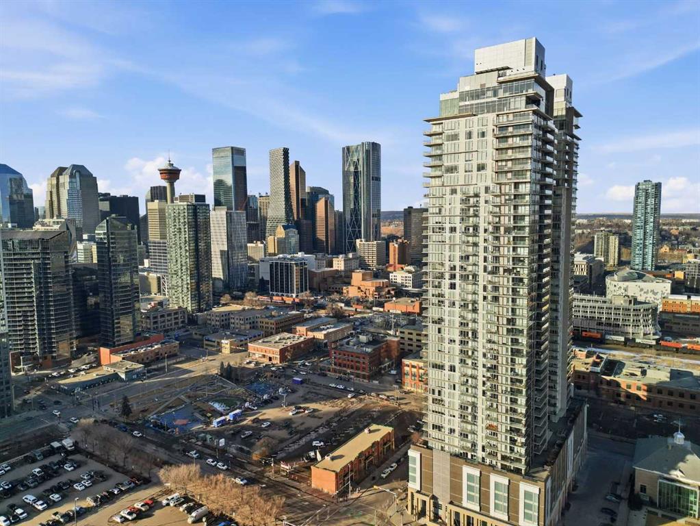Welcome to Unit 1501 at The Guardian — a bright and modern 1-bedroom, 1 bathroom condo offering elevated city living just outside of Calgary’s downtown core. This south-facing home is filled with natural light and offers expansive views of the ever-growing Stampede Park, creating an open, airy feel throughout. The thoughtfully designed floor plan is both functional and inviting, ideal for first-time buyers, professionals, or investors. The unit includes a titled, heated underground parking stall, adding everyday convenience and year-round comfort. The Guardian is known for its exceptional amenities, including a fully equipped fitness centre, recreation and social rooms, and a common area patio complete with community BBQs and fire tables, perfect for entertaining or unwinding after a long day. Residents also enjoy access to a hobby room, offering flexible space for creative projects and personal use. Located just one block from the future Calgary Flames Event Centre and steps from Stampede Park, transit, dining, and entertainment, this is an unbeatable location for those seeking an urban lifestyle with long-term growth potential. Whether you’re looking to live or invest, Unit 1501 offers comfort, convenience, and connection in one of Calgary’s most dynamic communities.