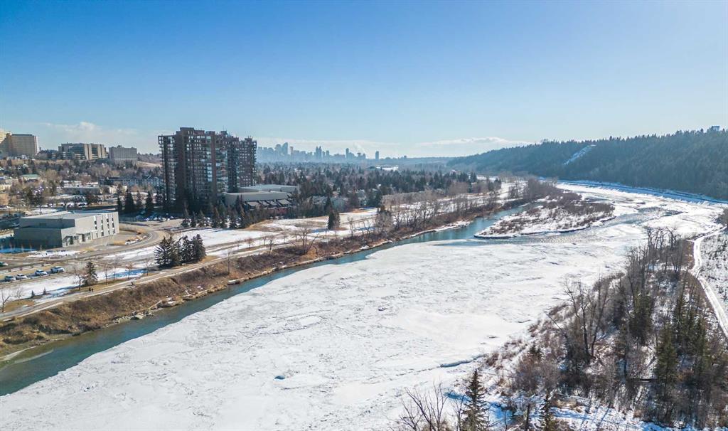 Welcome to Riverside Towers in Point McKay, one of Calgary’s most desirable inner-city 18+ high-rise communities, perfectly situated along the banks of the Bow River and just minutes from downtown. This updated 2-bedroom, 2-bathroom corner unit feels like a luxurious hotel, perfectly situated along the banks of the Bow River and just minutes from downtown. It boasts stunning floor-to-ceiling, 180-degree panoramic views of the Calgary skyline and the scenic northwest rolling hills.