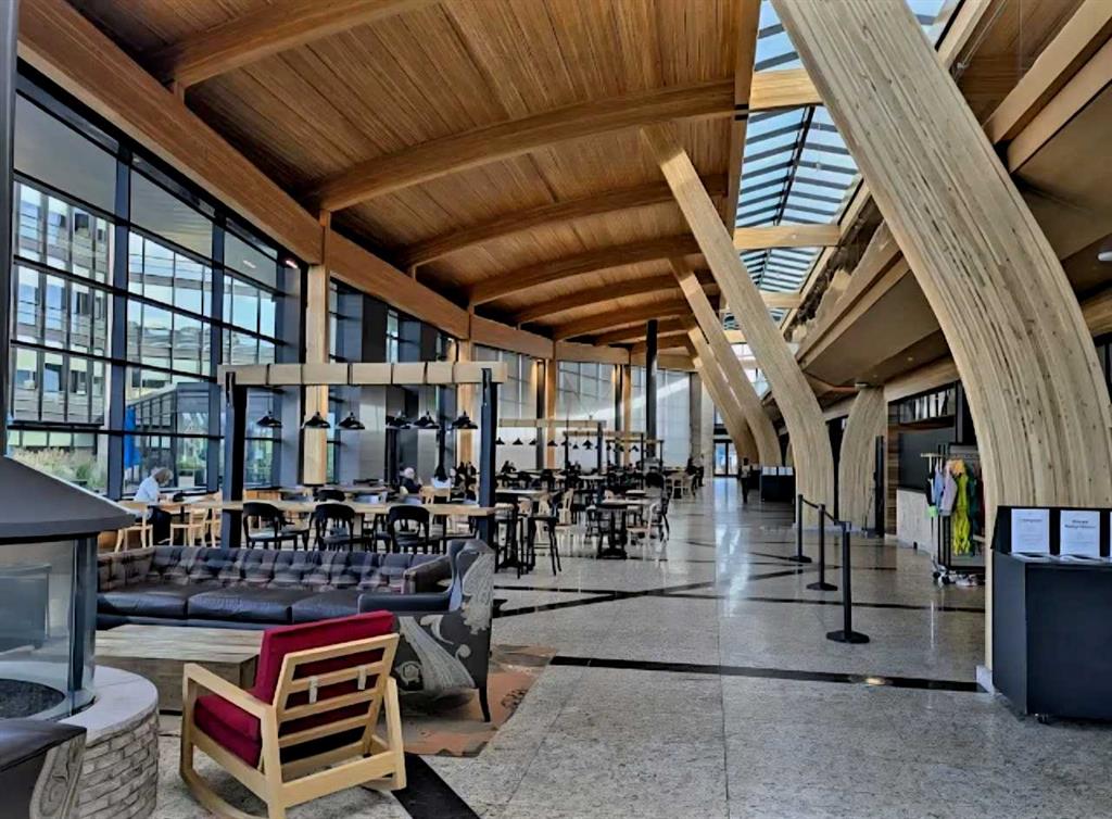 This ground floor unit offers 9′ ceilings, an open layout and an office. It is designed for low maintenance and faces east to catch the morning sun. It has direct exterior access with a front door that opens to the street. The unit’s indoor parking is located directly below it and can be accessed by stairs or an elevator right at the back door. The handicap ramp is a short distance down the hall from the back door. The building is built of concrete and the unit is very quiet. The mechanical systems are centralized which eliminates a furnace and a hot water tank. Residents have access to a well maintained 24 hr fitness facility, an interior courtyard garden, 2 guest rental suites and 40 indoor guest parking spots. The community features no through traffic, 4 parks including 3 with children’s playgrounds and a walking path. ATCO’s Blue Flame Kitchen is in the NE corner of the community. Local amenities include retail malls on the east and west sides of the community, Glenmore Park, Rockyview Hospital and Mara Loop 5 minutes away, Chinook Centre and Westhills 10 minutes away and downtown 15 minutes away. The community is bounded by Crowchild Trail and Glenmore Trail providing quick access to anywhere in the city. There are 7 buses within walking distance with easy access to the LRT, downtown and the SW side of the city. The community is adjacent to Mount Royal University which offers reasonably priced public memberships to its wonderful recreation facilities.