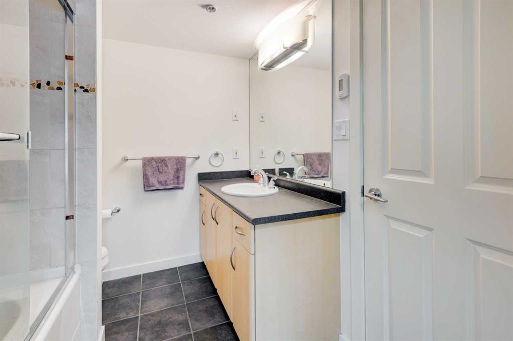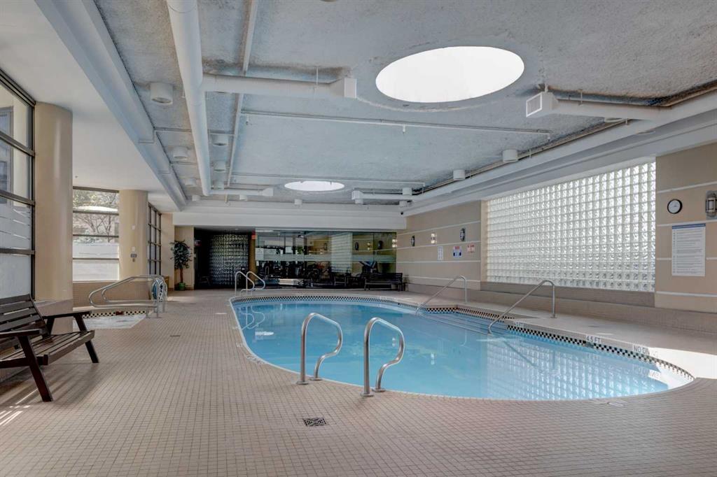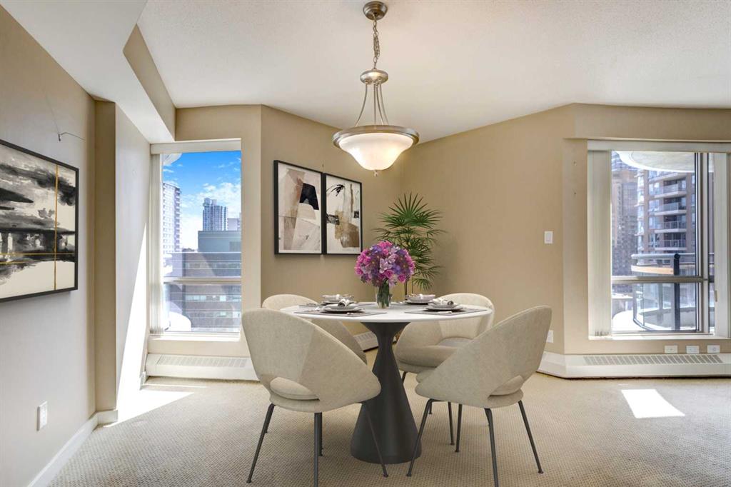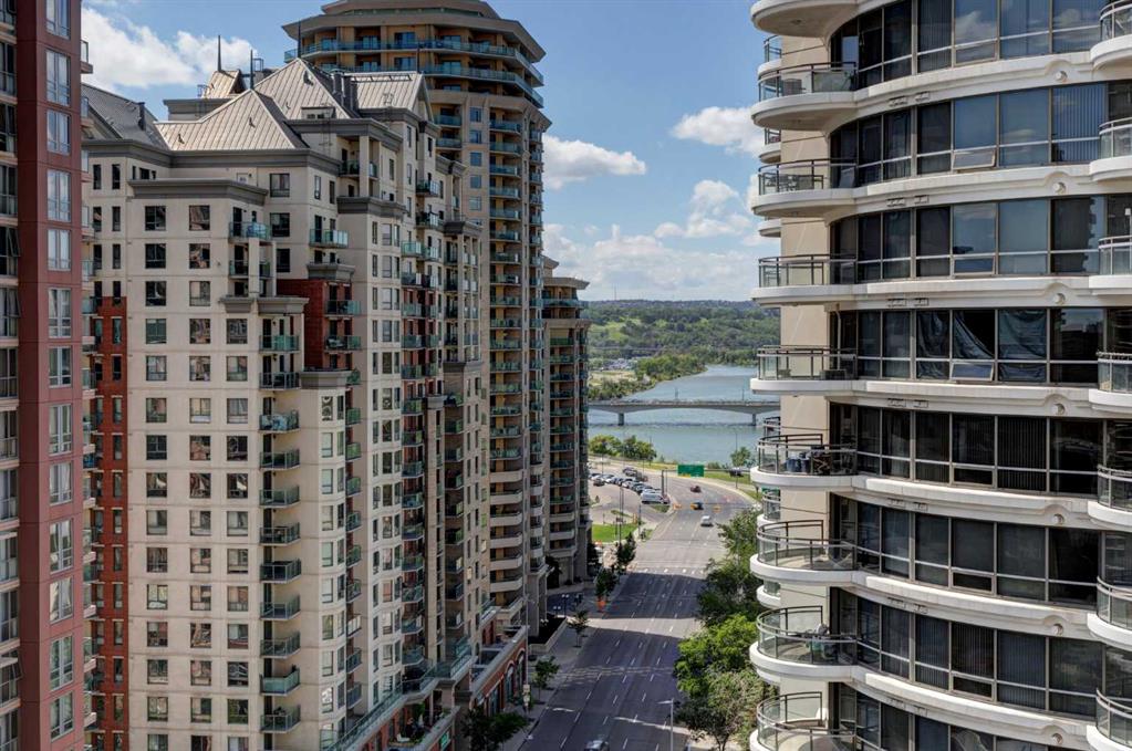 Welcome to Riverwest! This unit has been freshly painted from top to bottom and features brand new carpet. This is one of the building’s bigger one-bedroom plus den layouts, giving you a bright, open space that feels comfortable and inviting from the moment you walk in. Perched on the 15th floor of an immaculately maintained complex, it showcases stunning downtown views through its south-facing, floor-to-ceiling windows. Inside, the open-concept kitchen is designed for both style and functionality, featuring granite countertops, ample cabinetry, and an eat-up breakfast bar—perfect for casual meals or morning coffee. The spacious living room flows seamlessly into the formal dining area, creating a warm and inviting space for entertaining. The bright bedroom also showcases impressive city views and connects conveniently to a cheater 4-piece bath complete with a jetted tub, heated tile floors, and a granite-topped vanity. Residents can enjoy premium amenities including an indoor swimming pool and spa, a fully equipped fitness and recreation center, guest parking, and professional concierge service offering parcel delivery and dry-cleaning. The unit comes with one dedicated parking stall in the heated, secure underground parkade, along with a separate storage locker for added convenience. All of this is just steps from the Elbow River pathways, Prince’s Island Park, Kensington, downtown shopping and dining, and convenient transit options. This is urban living at its finest—come experience everything Riverwest has to offer! Please check out the VIRTUAL TOUR LINK for hi-tech interactive floor plans/hi-def photos/virtual tours where you can take a “walk” throughout all rooms of the property.