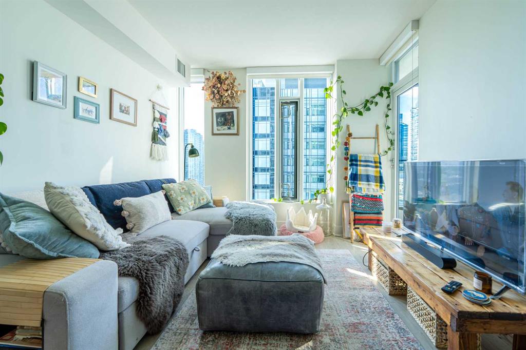 Well-maintained 1-bedroom plus den, 1 full bathroom unit on the 15th floor in the heart of downtown Calgary, offering beautiful city views and exceptional convenience. This bright and functional layout includes one underground parking stall and provides comfortable urban living. Located within walking distance to C-Train stations, restaurants, shopping, parks, and playgrounds. The building offers excellent amenities, including 24-hour secure access and a top-floor wellness area featuring a fitness centre, hot tub, sauna, steam room, and community room, all with impressive city views.