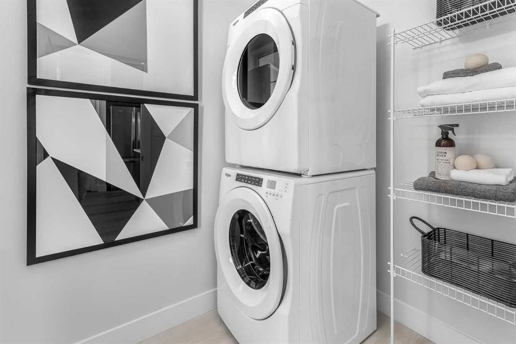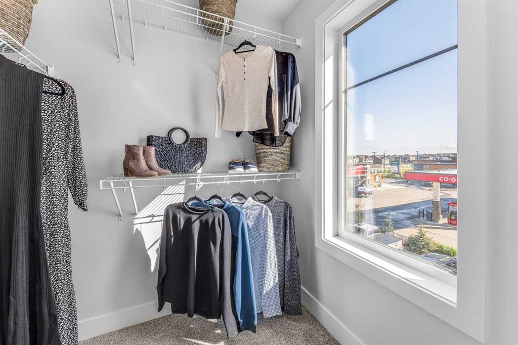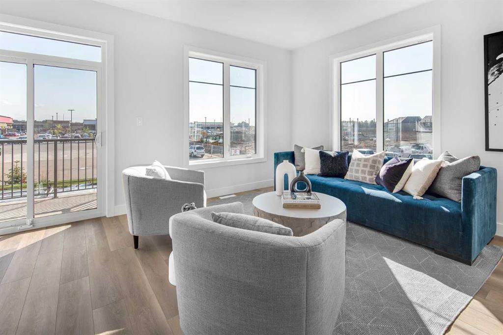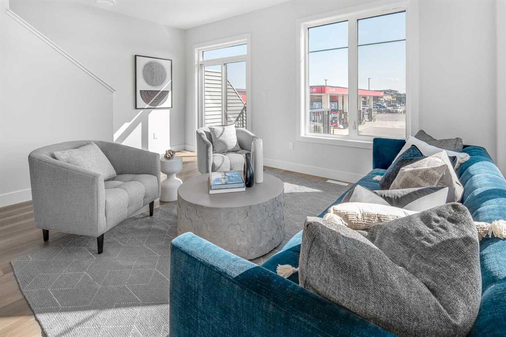 The stunning ‘Holiday’ model by Brookfield Residential is now available in the heart of Rockland Park! This brand-new townhome is thoughtfully designed and extensively upgraded, offering 3 bedrooms, 2.5 bathrooms, a ground-floor den, and a private double attached garage. The open-concept main living area features a timeless kitchen with full-height cabinetry, quartz countertops, a built-in hood fan and microwave, and a stainless-steel appliance package. The extended island provides additional seating, making it a natural gathering place. The kitchen flows seamlessly into the dining and living areas, which are filled with natural light thanks to a wall of windows. A private balcony off the living room offers the perfect spot to enjoy the summer sun. A full laundry room with extra storage and a 2-piece powder room complete this level. Upstairs, the spacious ~11’ x 12’ primary suite includes a walk-in closet and a private ensuite. Two additional bedrooms and a full bathroom complete the upper floor. On the lower level, a versatile den off the entryway provides the perfect space for a home office or flex area, while the private double attached garage keeps your vehicles and valuables safe year-round. This home has been upgraded throughout, including central A/C rough-in, BBQ gas line, pendant lighting over the island, 42″ upper cabinets, and a full interior selections package. The property is protected by both a full builder warranty and Alberta New Home Warranty, offering peace of mind in one of Calgary’s most sought-after new communities, with an unbelievable homeowner’s association, Rockland Park. If you’re looking for a stylish, low-maintenance townhome with exceptional design and craftsmanship—this is the one!