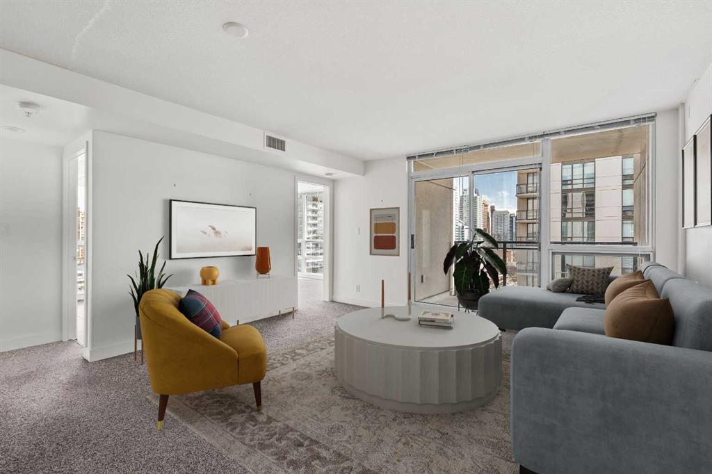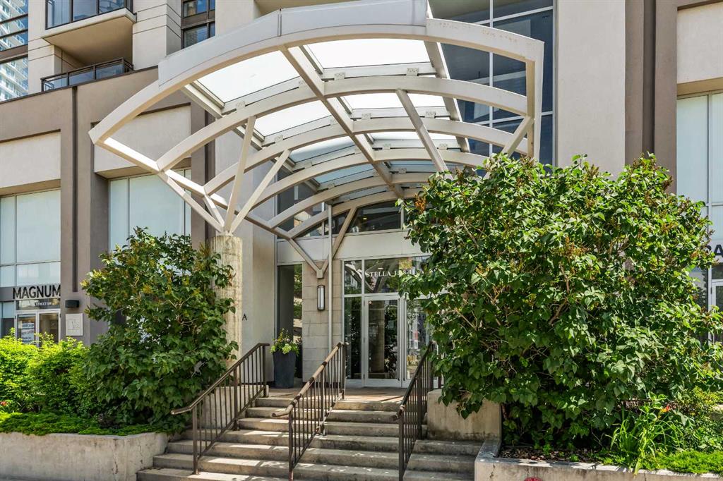Gorgeous downtown views and maintenance-free urban living await in this sophisticated 2 bedroom end unit in the amenity-rich Stella Building. Located across from historic Connaught School, down the street from Co-op and mere steps to Calgary’s premier entertainment district with nightlife, dining, pubs, diverse shops and much more right at your doorstep. The open floor plan immediately impresses with seemingly endless natural light, sweeping downtown views and a modern, yet comfortable design. Culinary adventures are inspired in the neutral kitchen boasting granite countertops, stainless steel appliances and sleek full-height cabinets. Centring the open concept space is the dining room with clear sightlines promoting unobstructed conversations. Floor-to-ceiling glass in the living room showcases those stunning views while your time is spent relaxing. Host summer barbeques on the spacious balcony with the big city lights as the breathtaking backdrop. The spectacular views continue into the primary oasis with oversized, full-height windows to capture the view, a large walk-in closet and access to the well appointed 4-piece bathroom. The second bedroom is nearly as indulgent with a full-height window framing unbeatable views and an abundance of sunshine perfect for guests or an office and is conveniently situated near the 4-piece bathroom. In-suite laundry, titled parkade parking and a separate storage locker add to your comfort and convenience. This unbeatable location is an easy walk or bike ride to downtown and the river or stroll along 17th Ave taking in the variety of shops, cafés and award-winning restaurants then come home to a safe and quiet building. There’s nothing left to do but move right in!
