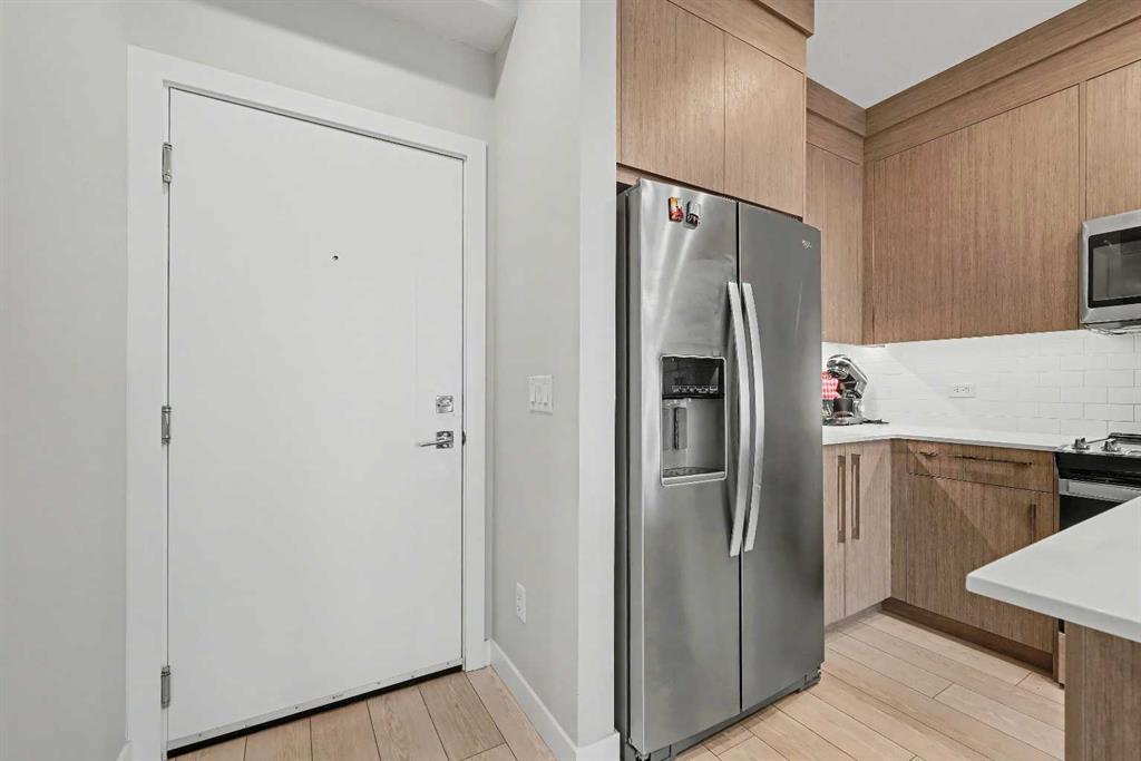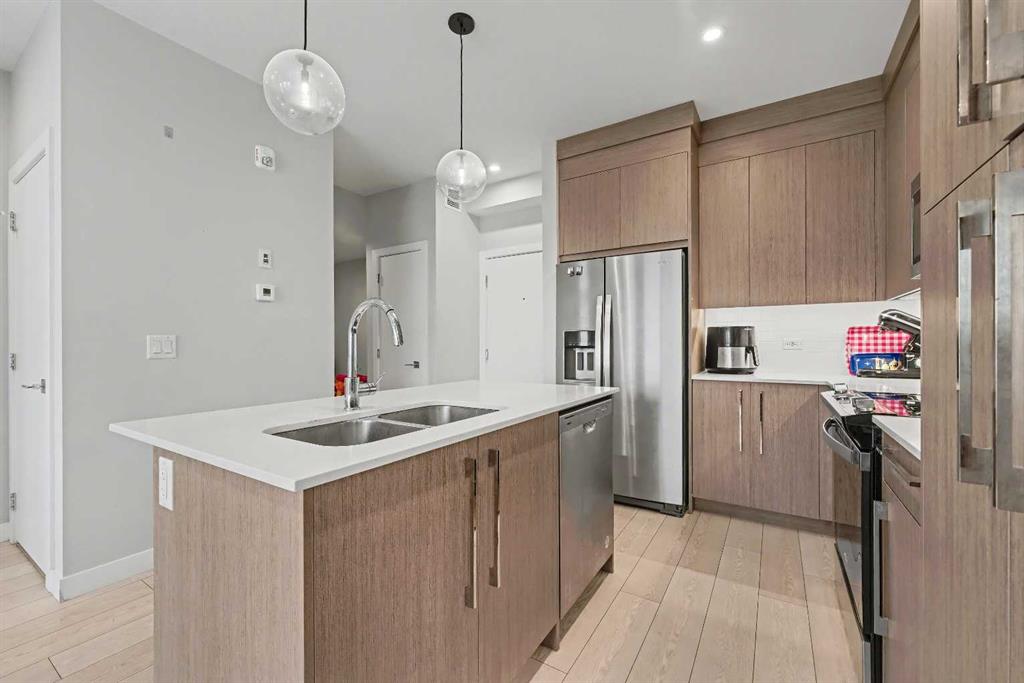 Discover modern condo living in vibrant Skyview Ranch, where lifestyle meets convenience. This bright unit features a private balcony with sweeping views of the ROCKY MOUNTAINS and DOWNTOWN CALGARY, plus the added benefit of one titled parking stall and an assigned storage space just outside your door. Residents enjoy access to premium building amenities including a fully equipped gym, a welcoming lounge for gatherings, and even a pet spa in the parkade — making everyday living both comfortable and elevated. Daily essentials are close at hand with FreshCo, Mega Sanjha Punjab, and Pak Foods minutes away. Café Rewind and Chai Sutta Bar offer cozy spots to unwind, while local favorites like Jaffa Shawarma and The ChaatBar serve up highly rated dining just steps from home. Outdoor recreation is nearby at Cityscape Wetland and Cornerstone Park, while families benefit from proximity to Prairie Sky School and Nelson Mandela High. Essential services such as Peter Lougheed Centre, Calgary Police Saddletowne, and Cornerstone Fire Station No. 38 provide peace of mind. With Saddletowne Station only 13 minutes away, commuting across the city is effortless. This condo offers the ideal blend of lifestyle, amenities, and views — a must-see opportunity in Calgary’s northeast.