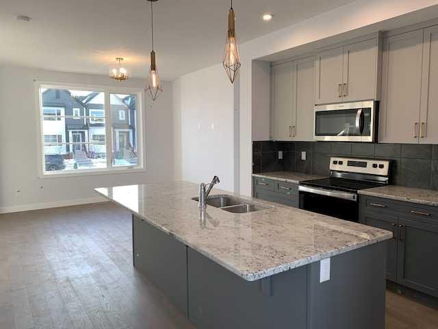 Discover the Troon, built by master builder Douglas Homes. This 1,180sqft, three-bedroom fee simple townhouse delivers a turnkey lifestyle with no condo fee’s. The open-concept main floor features 9-foot knockdown ceilings, luxury vinyl plank flooring, quartz countertops, and 42-inch upper cabinets. The bright, open-concept main floor showcases a spacious great room with oversized windows and an optional fireplace. The impressive 9-foot kitchen island comfortably seats 6–8, making it ideal for entertaining, while the adjoining dining area overlooks the sunny west backyard. Upstairs, the primary suite features a walk-in closet and a stylish 3-piece ensuite with quartz counters and a vanity with drawers. Two additional generously sized bedrooms provide plenty of space for family, guests, or a home office. A well-appointed 4-piece main bath includes quartz surfaces, a generous vanity, and a deep soaker tub. The lower level is thoughtfully designed, offering the perfect opportunity to create your dream space. Outside, the home is fully landscaped and includes a rear deck, fenced yard, and double garage. Don’t miss your chance—schedule your viewing today. Photos shown are from a previously built home and are intended to illustrate style and finishes; actual layouts and features may vary.*** The First-Time Home Buyers’ GST Rebate could save you up to $50,000 on a new home! You must be 18+, a Canadian citizen or permanent resident, and haven’t owned or lived in a home you or your spouse/common-law partner owned in the last four years. Terms and conditions are subject to the Government of Canada/CRA rules and guidelines.