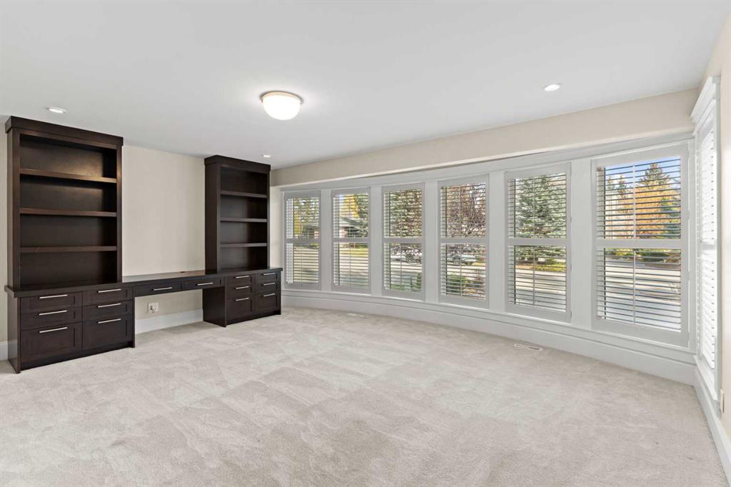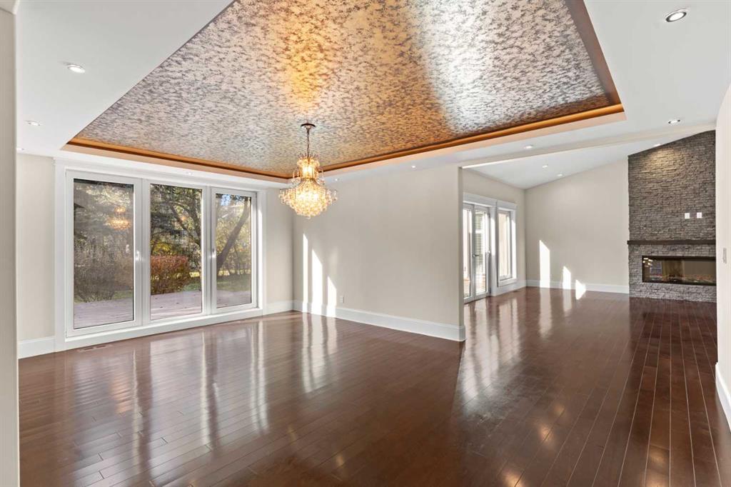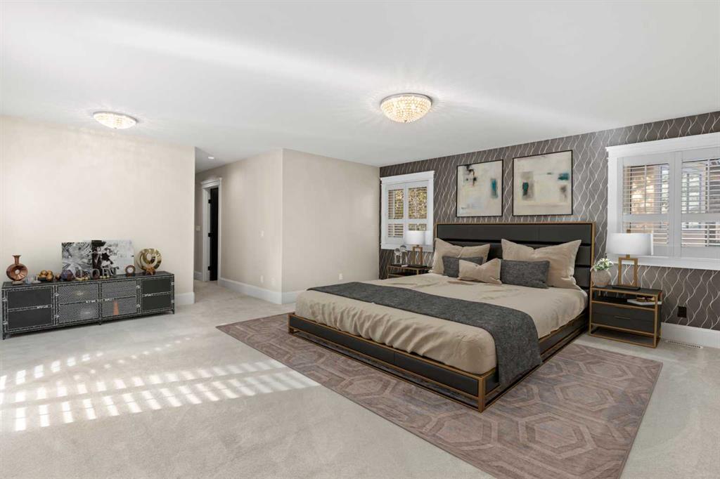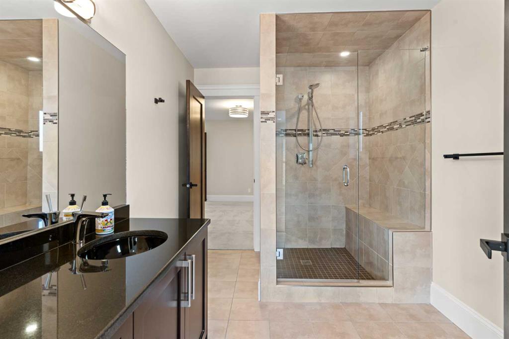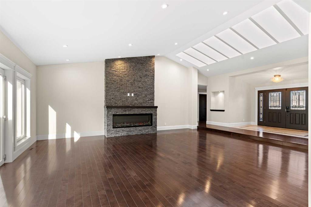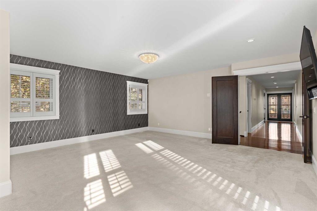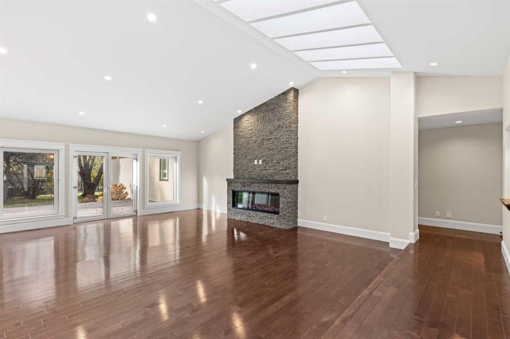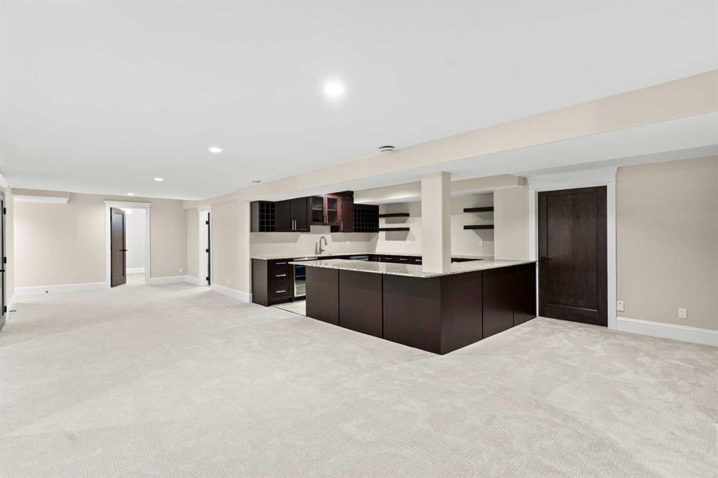 Welcome to 151 Pump Valley Court SW, a one-of-a-kind 3,500+ sq. ft. luxury bungalow offering over 6,500 sq. ft. of total living space on a 12,850 sq. ft. lot in the prestigious community of Pump Hill; steps from Glenmore Reservoir, Rockyview Hospital, and some of Calgary’s finest schools. Offering four bedrooms plus an office and five and a half bathrooms, this home blends elegance with modern comfort. From its grand 11-foot-wide travertine-tiled foyer and eight skylights to its soaring vaulted ceilings with beautifully framed openings, every detail exudes timeless sophistication. The main floor primary suite offers a tranquil retreat with French-door entry, patio access, dual custom walk-in closets, and a spa-inspired five-piece ensuite finished in imported Turkish travertine, granite countertops, crystal vessel sinks, Hansgrohe fixtures, heated floors, and a 5’x5’ glass shower. The main floor bedroom and office share a stylish Jack and Jill three-piece ensuite featuring a 4’x4’ glass shower with bench seating, while each lower-level bedroom enjoys its own private ensuite and walk-in closet. Throughout the main floor, you’ll find new high-pile carpet, solid-core shaker doors, designer mouldings, and European Innotech tilt-and-turn windows that blend craftsmanship with comfort. A dramatic 8’x12’ floor-to-ceiling faux-stone Napoleon fireplace anchors the formal living room, complemented by French doors to the back patio and eight skylights flooding the space with natural light. The coffered-ceiling dining room and adjoining breakfast nook flow seamlessly to the family room, providing an elegant setting for entertaining. The chef’s kitchen is a showpiece with a massive granite island illuminated by sun-tunnel skylights, premium Wolf and Sub-Zero appliances, a Bosch microwave, a Blanco Silgranit sink, and a walk-in pantry with a glass door. Completing the main floor is a designer powder room, a travertine-tiled laundry/mudroom, and an insulated triple-car garage. Outside, enjoy a partial wraparound deck, a fully updated exterior with new stucco, Hardie Board casings, a new roof with enhanced ventilation, a gas BBQ hookup, a Stobag electronic awning, and a professionally landscaped yard with underground sprinklers. The newly renovated lower level extends the home’s luxury with a travertine and granite bar featuring Bosch and Frigidaire appliances, a tiered theatre, mirrored gym with premium rubber flooring, two guest bedrooms with new four-piece ensuites and walk-in closets, and an additional five-piece spa bathroom with a programmable glass steam shower, Hansgrohe fixtures, and a soaking tub. Modern comfort continues with dual-zone heating, two new A/C units, Kinetico water filtration and softener systems, a new sump pump and central vacuum. Blending meticulous craftsmanship with an unbeatable location, this exceptional residence embodies sophistication, comfort, and timeless design; an unparalleled opportunity to own a distinctive home in sought-after Pump Hill.