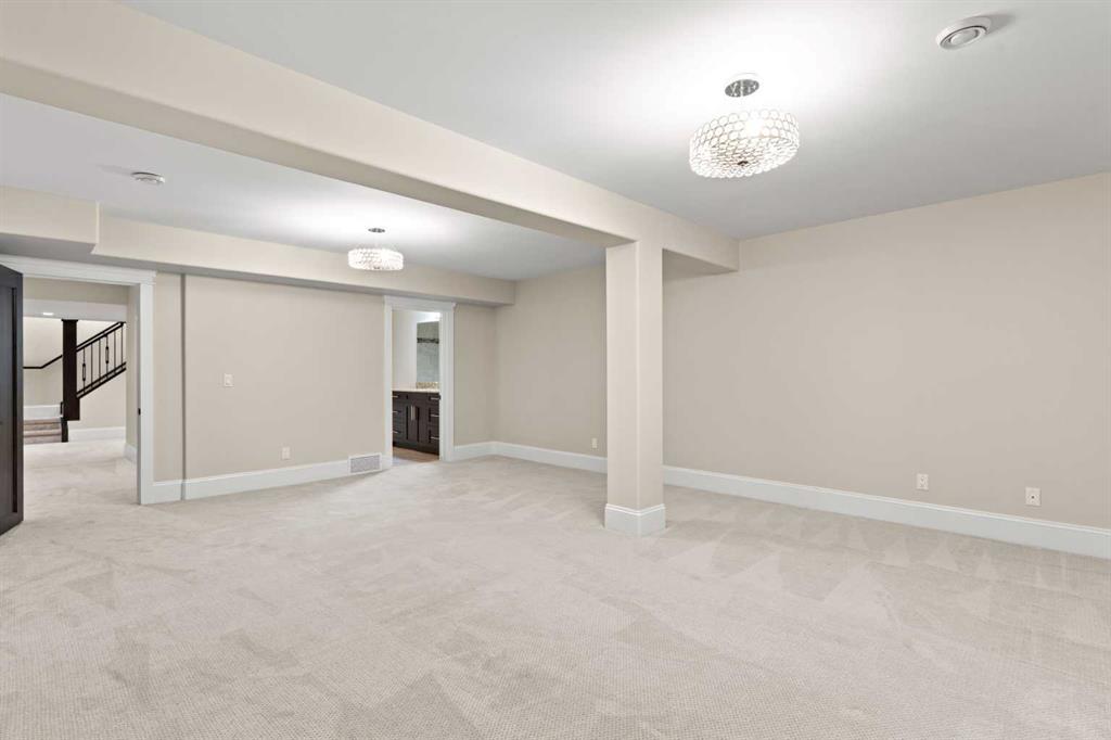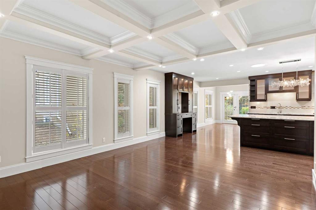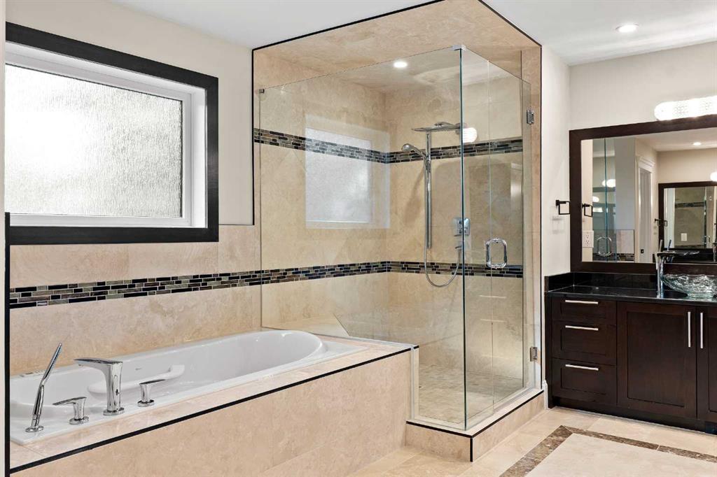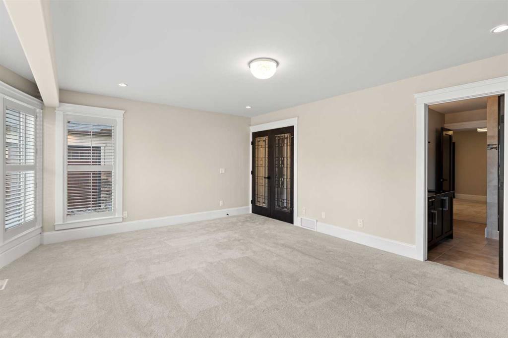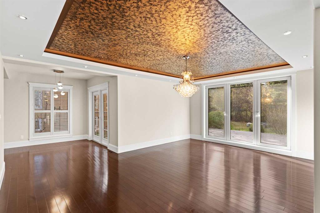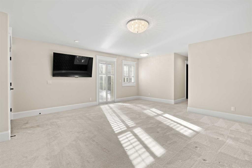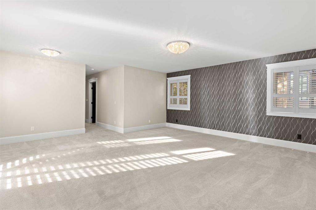 Welcome to 151 Pump Valley Court SW, a one-of-a-kind 3,500+ sq. ft. luxury bungalow offering over 6,500 sq. ft. of total living space on a 12,850 sq. ft. lot in the prestigious community of Pump Hill; steps from Glenmore Reservoir, Rockyview Hospital, and some of Calgary’s finest schools. Offering four bedrooms plus an office and five and a half bathrooms, this home blends elegance with modern comfort. From its grand 11-foot-wide travertine-tiled foyer and eight skylights to its soaring vaulted ceilings with beautifully framed openings, every detail exudes timeless sophistication. The main floor primary suite offers a tranquil retreat with French-door entry, patio access, dual custom walk-in closets, and a spa-inspired five-piece ensuite finished in imported Turkish travertine, granite countertops, crystal vessel sinks, Hansgrohe fixtures, heated floors, and a 5’x5’ glass shower. The main floor bedroom and office share a stylish Jack and Jill three-piece ensuite featuring a 4’x4’ glass shower with bench seating, while each lower-level bedroom enjoys its own private ensuite and walk-in closet. Throughout the main floor, you’ll find new high-pile carpet, solid-core shaker doors, designer mouldings, and European Innotech tilt-and-turn windows that blend craftsmanship with comfort. A dramatic 8’x12’ floor-to-ceiling faux-stone Napoleon fireplace anchors the formal living room, complemented by French doors to the back patio and eight skylights flooding the space with natural light. The coffered-ceiling dining room and adjoining breakfast nook flow seamlessly to the family room, providing an elegant setting for entertaining. The chef’s kitchen is a showpiece with a massive granite island illuminated by sun-tunnel skylights, premium Wolf and Sub-Zero appliances, a Bosch microwave, a Blanco Silgranit sink, and a walk-in pantry with a glass door. Completing the main floor is a designer powder room, a travertine-tiled laundry/mudroom, and an insulated triple-car garage. Outside, enjoy a partial wraparound deck, a fully updated exterior with new stucco, Hardie Board casings, a new roof with enhanced ventilation, a gas BBQ hookup, a Stobag electronic awning, and a professionally landscaped yard with underground sprinklers. The newly renovated lower level extends the home’s luxury with a travertine and granite bar featuring Bosch and Frigidaire appliances, a tiered theatre, mirrored gym with premium rubber flooring, two guest bedrooms with new four-piece ensuites and walk-in closets, and an additional five-piece spa bathroom with a programmable glass steam shower, Hansgrohe fixtures, and a soaking tub. Modern comfort continues with dual-zone heating, two new A/C units, Kinetico water filtration and softener systems, a new sump pump and central vacuum. Blending meticulous craftsmanship with an unbeatable location, this exceptional residence embodies sophistication, comfort, and timeless design; an unparalleled opportunity to own a distinctive home in sought-after Pump Hill.