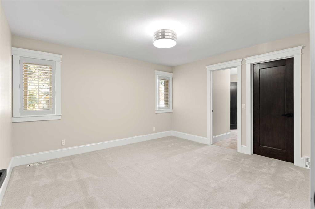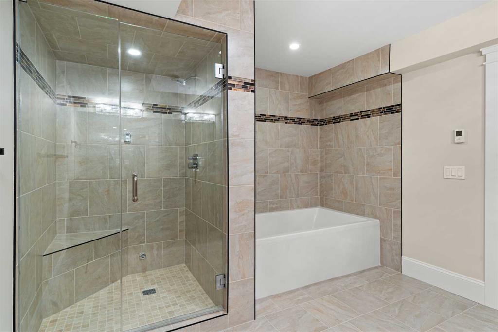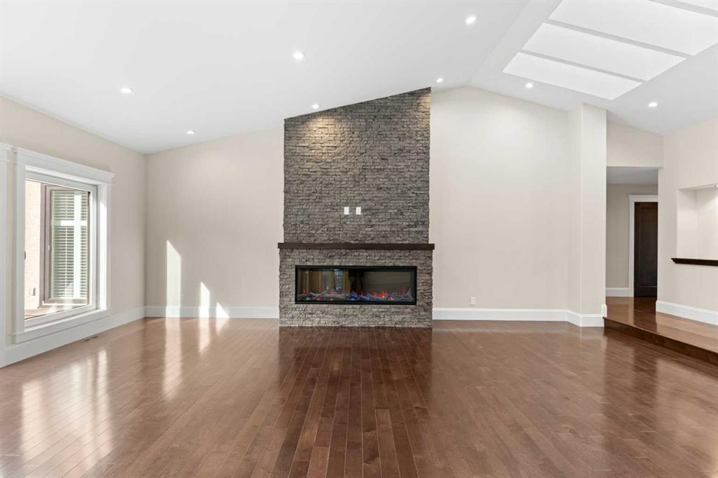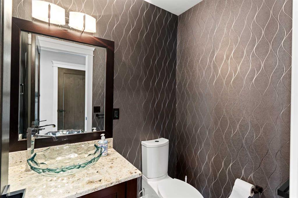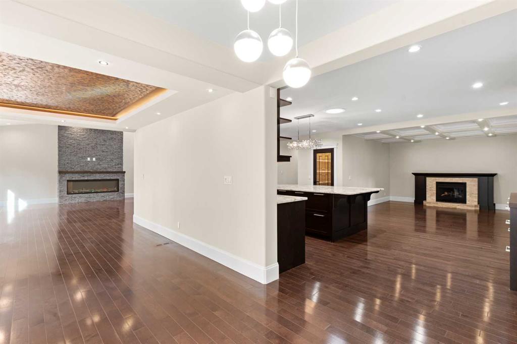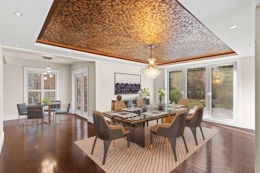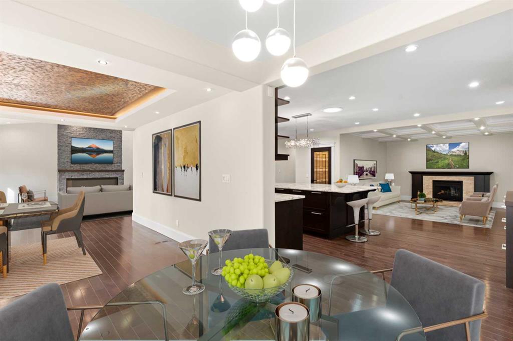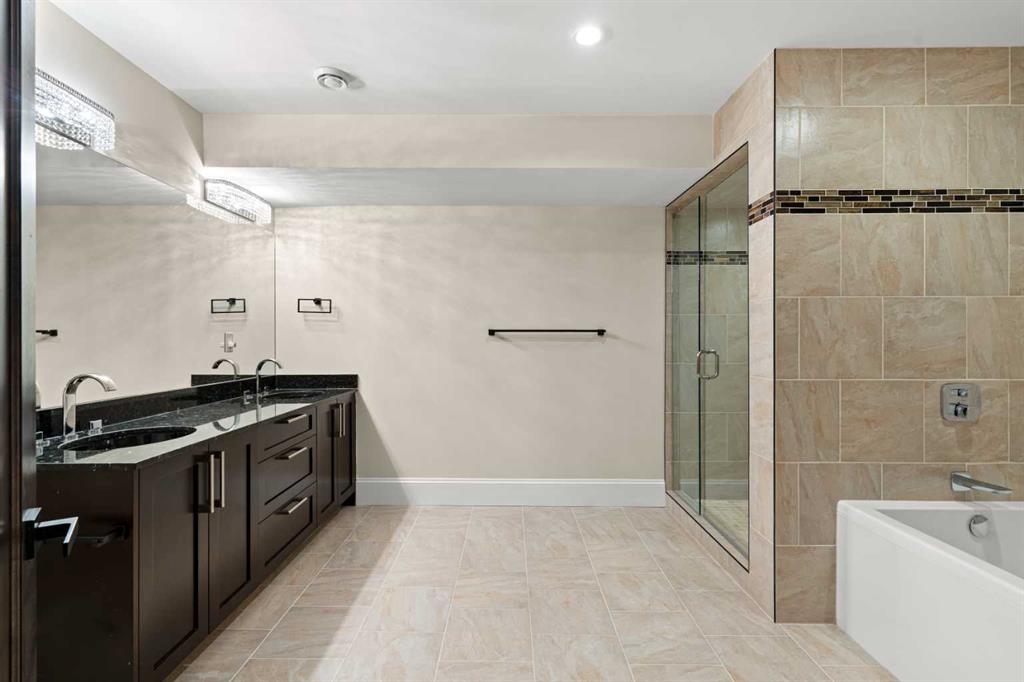 Welcome to 151 Pump Valley Court SW, a one-of-a-kind 3,500+ sq. ft. luxury bungalow offering over 6,500 sq. ft. of total living space on a 12,850 sq. ft. lot in the prestigious community of Pump Hill; steps from Glenmore Reservoir, Rockyview Hospital, and some of Calgary’s finest schools. Offering four bedrooms plus an office and five and a half bathrooms, this home blends elegance with modern comfort. From its grand 11-foot-wide travertine-tiled foyer and eight skylights to its soaring vaulted ceilings with beautifully framed openings, every detail exudes timeless sophistication. The main floor primary suite offers a tranquil retreat with French-door entry, patio access, dual custom walk-in closets, and a spa-inspired five-piece ensuite finished in imported Turkish travertine, granite countertops, crystal vessel sinks, Hansgrohe fixtures, heated floors, and a 5’x5’ glass shower. The main floor bedroom and office share a stylish Jack and Jill three-piece ensuite featuring a 4’x4’ glass shower with bench seating, while each lower-level bedroom enjoys its own private ensuite and walk-in closet. Throughout the main floor, you’ll find new high-pile carpet, solid-core shaker doors, designer mouldings, and European Innotech tilt-and-turn windows that blend craftsmanship with comfort. A dramatic 8’x12’ floor-to-ceiling faux-stone Napoleon fireplace anchors the formal living room, complemented by French doors to the back patio and eight skylights flooding the space with natural light. The coffered-ceiling dining room and adjoining breakfast nook flow seamlessly to the family room, providing an elegant setting for entertaining. The chef’s kitchen is a showpiece with a massive granite island illuminated by sun-tunnel skylights, premium Wolf and Sub-Zero appliances, a Bosch microwave, a Blanco Silgranit sink, and a walk-in pantry with a glass door. Completing the main floor is a designer powder room, a travertine-tiled laundry/mudroom, and an insulated triple-car garage. Outside, enjoy a partial wraparound deck, a fully updated exterior with new stucco, Hardie Board casings, a new roof with enhanced ventilation, a gas BBQ hookup, a Stobag electronic awning, and a professionally landscaped yard with underground sprinklers. The newly renovated lower level extends the home’s luxury with a travertine and granite bar featuring Bosch and Frigidaire appliances, a tiered theatre, mirrored gym with premium rubber flooring, two guest bedrooms with new four-piece ensuites and walk-in closets, and an additional five-piece spa bathroom with a programmable glass steam shower, Hansgrohe fixtures, and a soaking tub. Modern comfort continues with dual-zone heating, two new A/C units, Kinetico water filtration and softener systems, a new sump pump and central vacuum. Blending meticulous craftsmanship with an unbeatable location, this exceptional residence embodies sophistication, comfort, and timeless design; an unparalleled opportunity to own a distinctive home in sought-after Pump Hill.