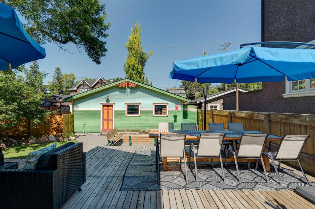 Tucked behind mature hedges, this 1920s Folk Victorian (nicknamed Clover) home feels like a secret garden in the heart of the city. Situated on a large 50 x 125 ft lot with R-CG zoning and just shy of 1,500 sq. ft above grade, the home blends heritage character with tasteful upgrades. As you walk up, you’ll notice the perennial garden and covered front porch with colourful accents. Inside, natural wood trim, hardwood floors, and a fireplace anchor the main level. The renovated kitchen features white cabinetry, stainless steel appliances, a butcher-block island, and a wide window overlooking the expansive backyard. Open living and dining spaces flow easily for daily life and entertaining. Upstairs, three bright bedrooms all which overlook the beautiful mature trees provide comfort and flexibility plus the primary bed comes complete with a south facing private deck. This floor also has a spacious bathroom with dual sinks and bathtub/shower. The outdoor space is private and designed for entertaining through all seasons. A large back deck offers multiple seating zones for dining and lounging, while garden beds and a stone patio with a built-in firepit invite gatherings under the trees. The wraparound front porch, tucked behind greenery, adds to the home’s charm and retreat-like feel. An oversized detached garage provides plenty of room for both cars and storage, with an additional parking pad for convenience. Despite the central location, the mature hedges create a sense of peace, offering both privacy and sound buffering. Every detail has been thoughtfully updated while preserving the home’s character, making this a rare mix of history, privacy, and lifestyle. The community of South Calgary offers a prime inner-city location with easy access to Crowchild and Glenmore Trails, and walkability to shopping, dining, and entertainment in Marda Loop, and a quick commute to the downtown core.