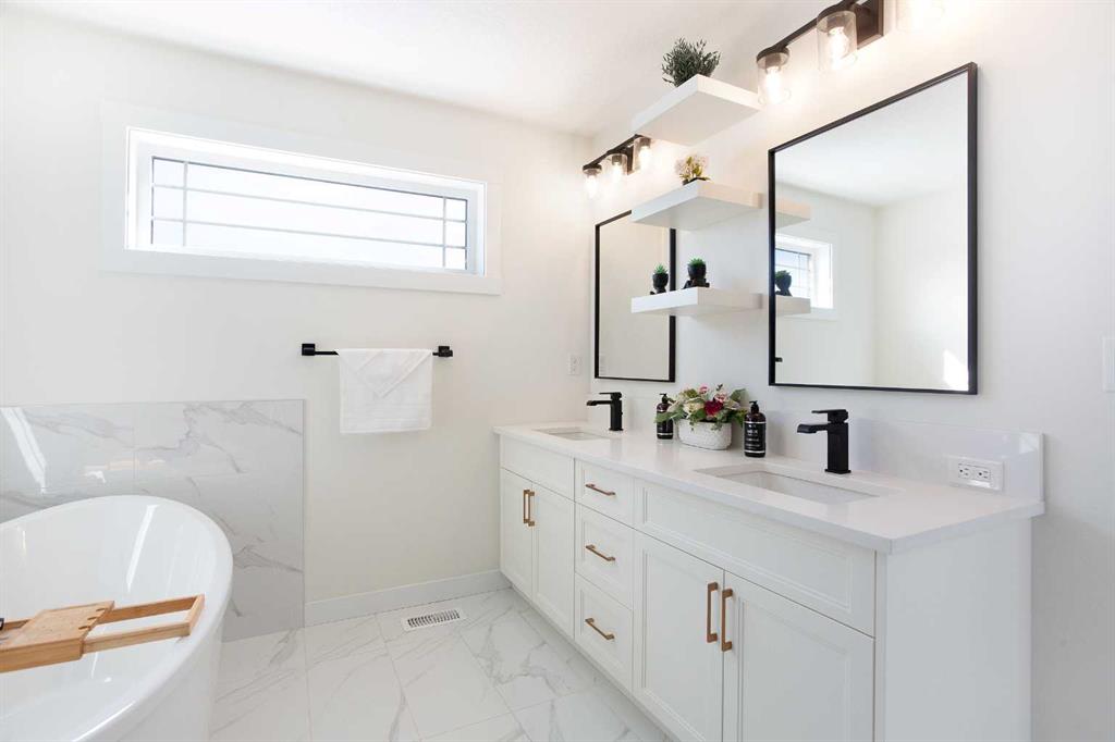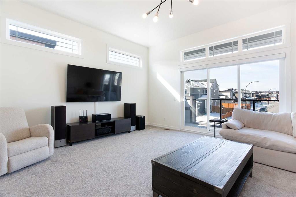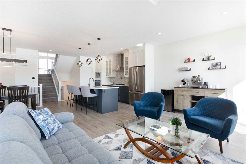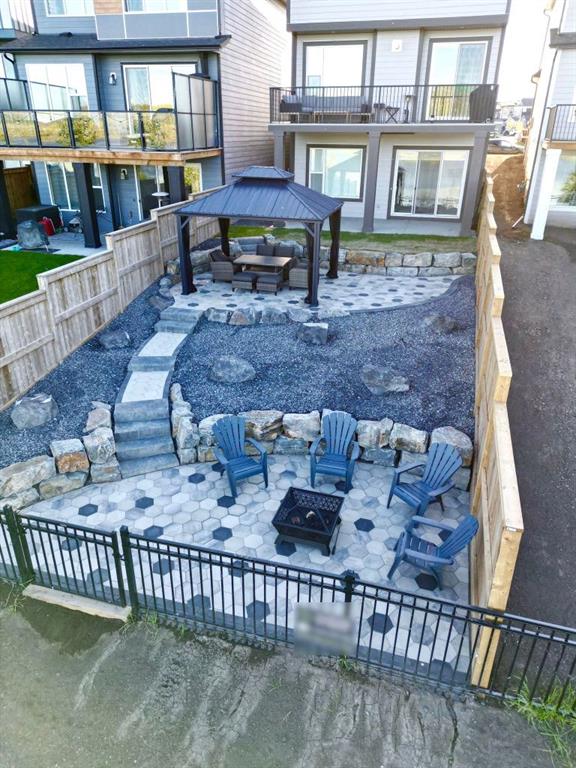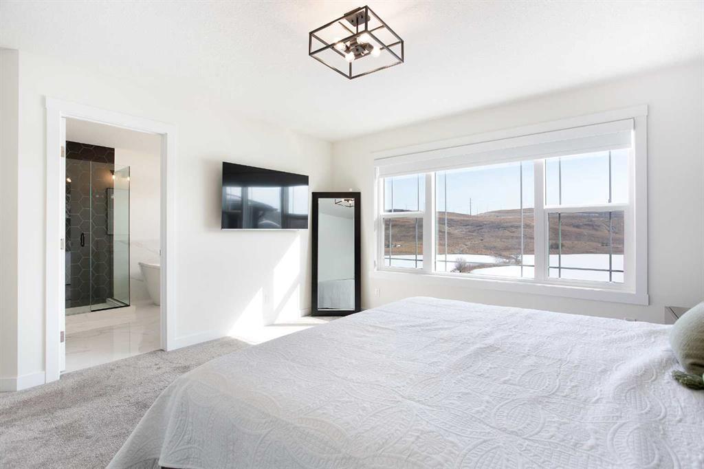 Welcome to an exceptional offering in the prestigious Riverstone community, where refined living meets everyday convenience. Boasting 2,836 SqFt of exquisitely upgraded living space, this 4-bedroom, 3.5-bathroom split-level home is thoughtfully designed for both family life and elevated entertaining. The chef-inspired kitchen is a true centerpiece, featuring quartz countertops, ceiling-height cabinetry, a custom tile backsplash, glass cabinet accents, and a premium built-in gas range with wall oven and microwave. A pot filler and expansive pantry complete the space, making it as functional as it is beautiful. Upstairs, three spacious bedrooms offer oversized closets and expanded windows, while the luxurious 5-piece ensuite impresses with a standalone tub and full tile extended shower. The fully developed basement is bright and inviting with 9.5-foot ceilings, oversized windows, and a large sliding glass door. It includes a generous recreation area, fourth bedroom, office, and a convenient full bathroom with a walk-in tile shower. Outdoors, the extensively landscaped tiered backyard is a private oasis, featuring multiple seating areas, brushed concrete steps, unique hexagonal paving stones, and striking rock walls. A full-width balcony enhances your outdoor living experience. Surrounded by parks, wetlands, and scenic Bow River pathways, and just 3 minutes to Stoney Trail, this home offers the perfect blend of luxury, lifestyle, and location for the discerning buyer.
