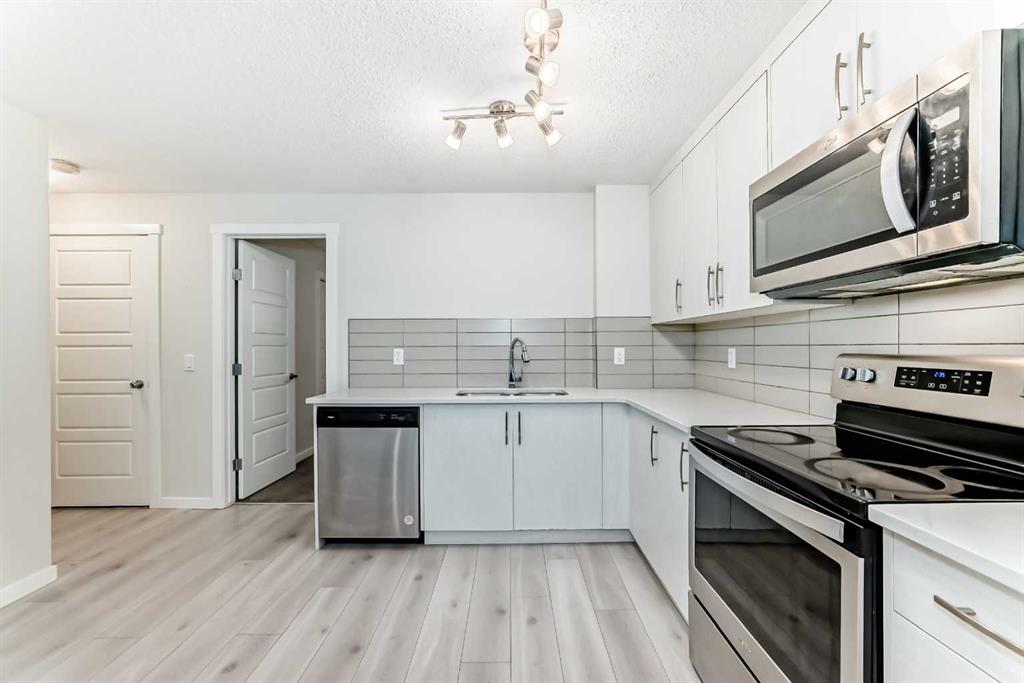 Low Condo Fee Townhome | 2023 BUILT | 3 Large Bedrooms | 2- Full Baths | Grand Living Space | High Ceilings | Open Floor Plan | L-shaped Kitchen | Quartz Countertops | Stainless Steel Appliances | Stacked Laundry | Large Windows | Large Concrete Patio w/ BBQ gas line | Assigned Parking Stall. Welcome to this one level townhome in heart of Cranston’s Riverstone community. It consists of 3 large size Bedrooms / 2x4PC Bath / High ceiling throughout the unit with over 1,057 SQFT of living space. This immaculately presented townhome is the perfect addition to any INVESTMENT PORTFOLIO or for a FIRST or SECOND TIME HOME BUYER. This affordable condo features: spacious kitchen with ton of cabinetry with Quartz countertop and tile backsplash, all STAINLESS-STEEL appliances. It also consists of large bright windows letting in a TON OF LIGHT in the unit, MASTER BEDROOM with ENSUITE & large closet, second and third spacious bedrooms, GREAT SIZE LIVING AND DINING ROOM. For FLOORING: Luxury vinyl plank flooring throughout the living room, dining room and kitchen, and carpets with thick underlay in the bedrooms for your comfort. ADDED BONUS, comes with 1 Assigned PARKING STALL right in front of the Unit. Pets allowed (Condo board restrictions apply), location is exceptionally close to schools, medical, dental, banks, strip mall, cineplex, restaurants, parks and playgrounds and all amenities. Exceptionally close to Deerfoot Hwy, Stoney Hwy, Parks, Golf Course, Bow River walking trails and transit access. Enjoy the perks of the Cranston Clubhouse just a 5 minutes drive from your doorstep. Come see it before it’s gone! This condo will not last long, call to book your tour today!