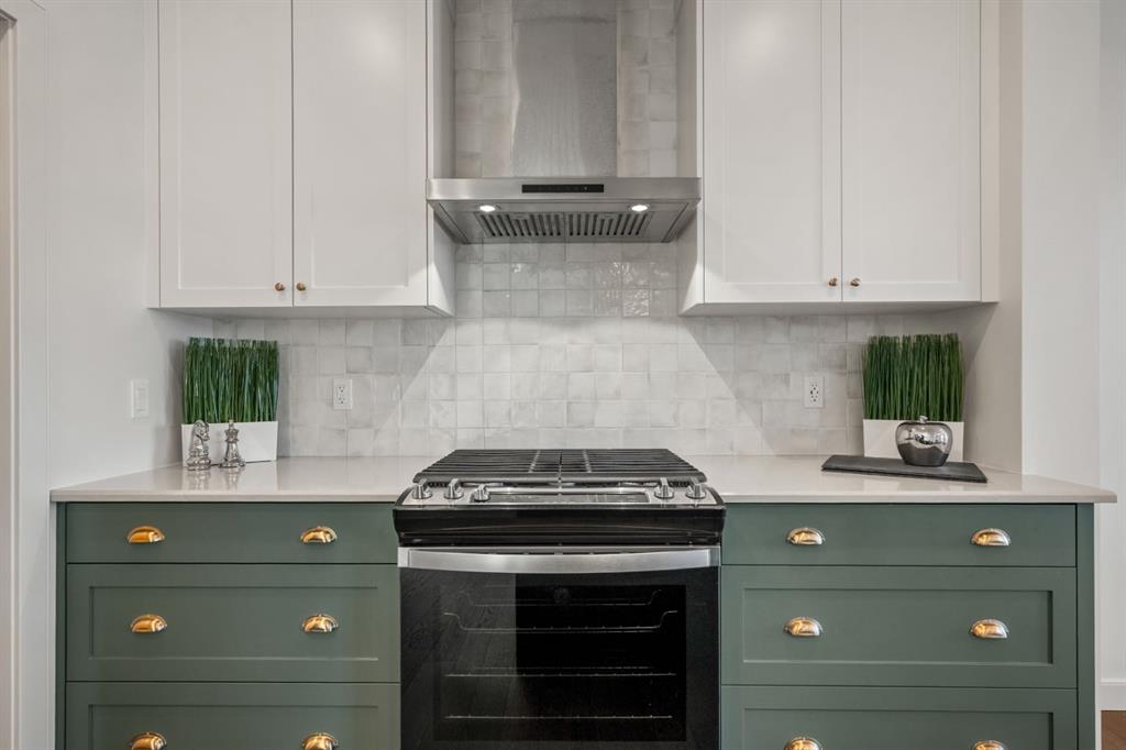 As you enter, you’re greeted by a grand foyer with an open-to-below design, creating a sense of elegance and openness right from the start. The gourmet kitchen is a true showpiece, featuring a large island, two-tone cabinetry accented with gold hardware, a beautiful designer backsplash, and quartz countertops. A walk-through pantry connects conveniently to the mudroom, providing easy access to the garage and additional storage.
