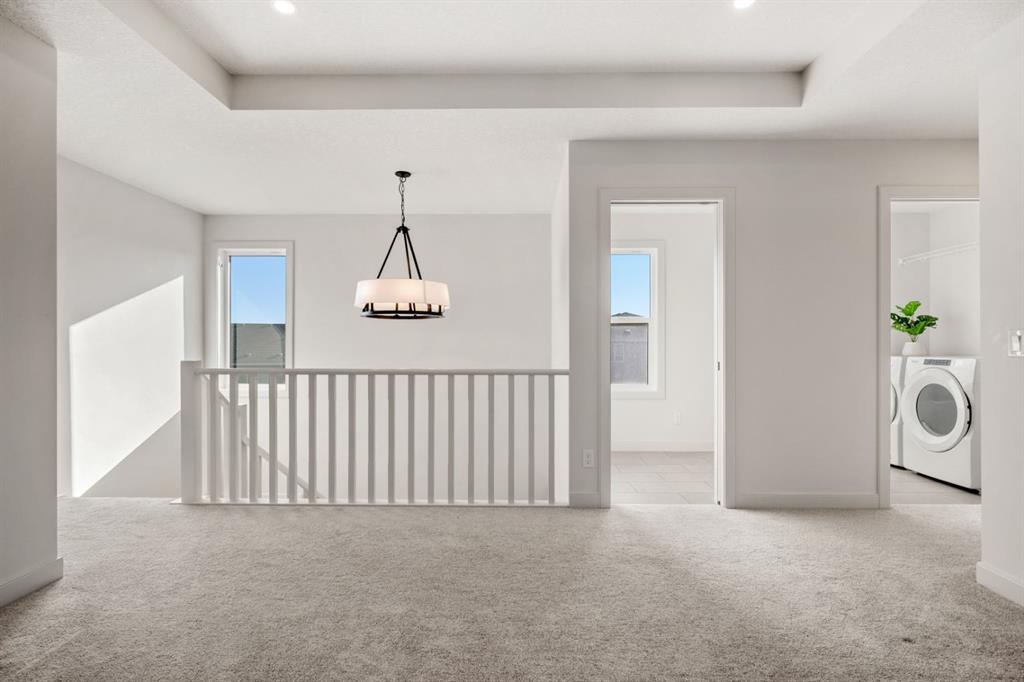 Upstairs, you’ll find a massive bonus room, perfect for movie nights or a cozy family retreat. The primary suite offers a luxurious escape, complete with a walk-in closet and a five-piece ensuite featuring dual sinks, a soaking tub, and a glass-enclosed shower. Two additional generous-sized bedrooms share a beautifully appointed four-piece bathroom with a dual vanity, ensuring comfort and convenience for family or guests. A laundry room and a flex space—perfect for a home office or study nook—complete this thoughtfully designed upper level.