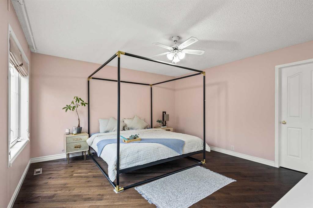 Upstairs, you’ll discover FOUR full bedrooms — a rare find in McKenzie Towne. The primary bedroom is a private retreat with hardwood flooring, double sinks, quartz counters, a jetted soaker tub, and a separate shower. The additional oversized bedroom, complete with its own fireplace and office/study corner, makes for a cozy personal haven, while the other two bedrooms offer plenty of space for family or guests.