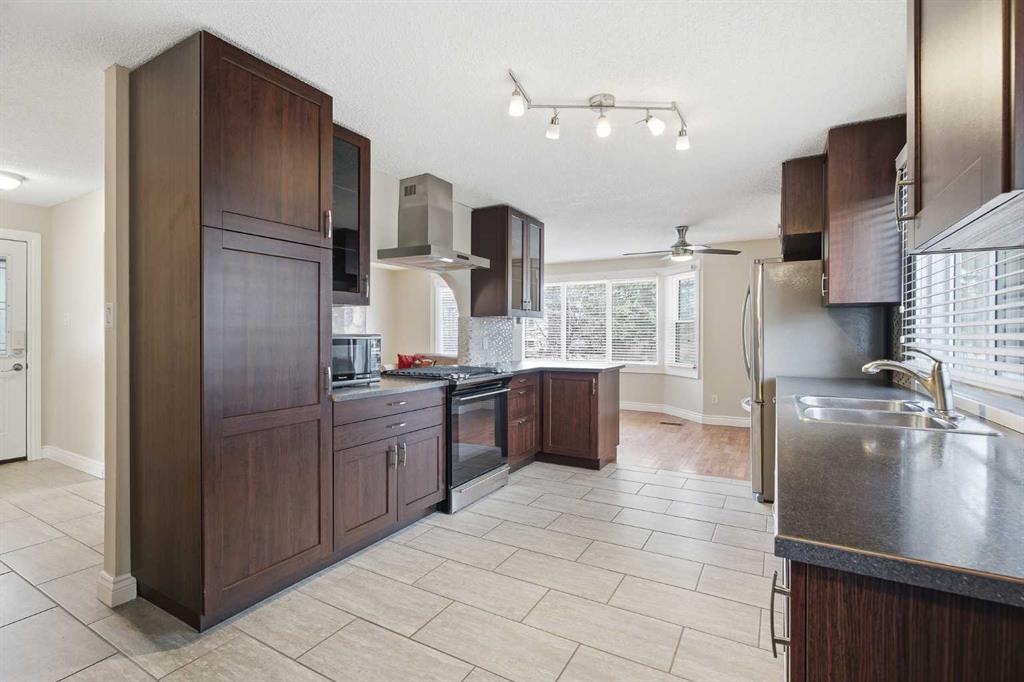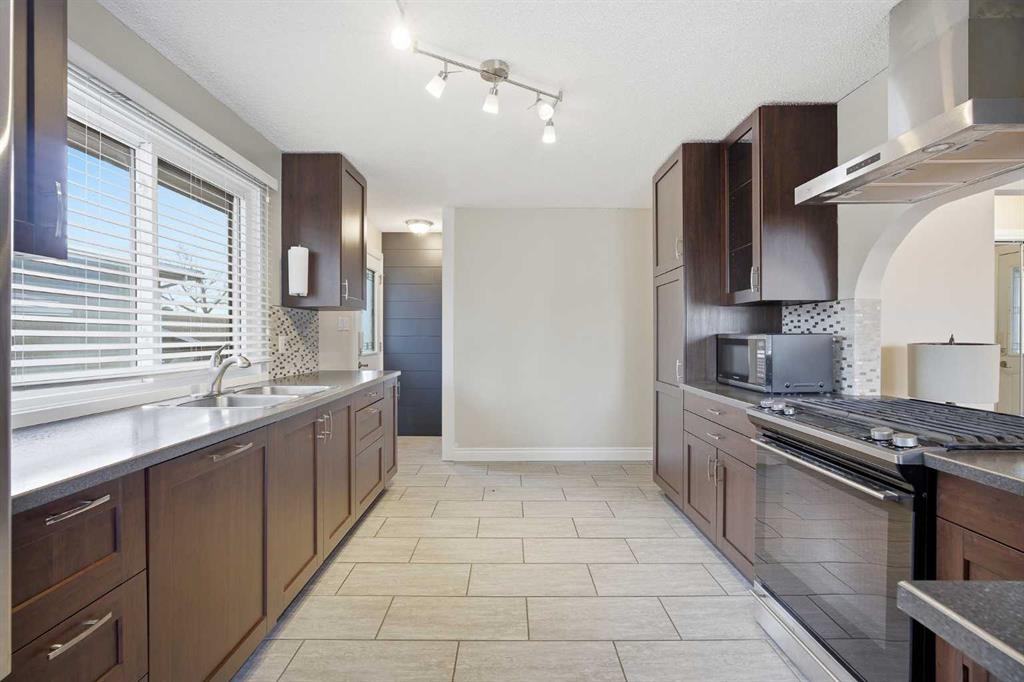 Welcome to this charming and versatile bungalow, perfectly situated in an amazing location on a quiet, tree-lined street. This well-maintained home offers exceptional value with a total of four bedrooms, including a 2-bedroom main floor one of which is an oversized primary with walk-in closet and a 2-bedroom illegal suited basement—ideal for extended family or added income potential. Step inside to discover a bright and inviting main level featuring newer windows that flood the home with natural light. The spacious, functional kitchen provides ample cabinetry and workspace, making it perfect for everyday living and entertaining alike. The open concept main living area lets you be part of the action at all times. Downstairs, the fully developed basement offers a separate living space with two bedrooms, a kitchen area, and a private entrance, giving flexibility for a variety of living arrangements. Outside, you’ll love the sunny south-facing backyard—perfect for gardening, relaxing, or hosting summer gatherings. The property also features a detached garage plus convenient back lane access. The front driveway has a carport and ample parking for 3 cars.