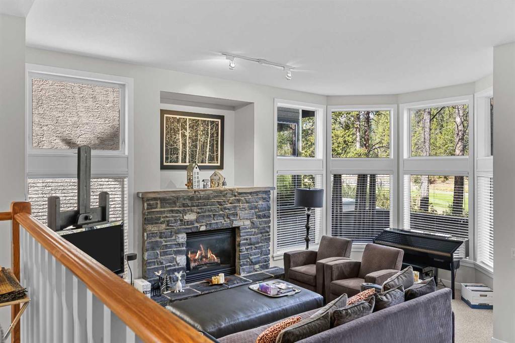 A rare opportunity awaits in Aspen Glen, Grizzly Ridge, a serene townhome community tucked away along the coveted fairways of Silvertip Golf Course. This spacious 3-bedroom, 4-bathroom home combines mountain charm with thoughtful design, offering both privacy and spectacular views. Step inside to a bright and inviting entry, where skylights above the foyer and staircase flood the home with natural light. The sunken living room is the heart of the home, showcasing tall ceilings and a wall of windows that frame the tranquil golf course backdrop. A cozy fireplace adds warmth, while the spacious dining room and breakfast nook capture stunning mountain vistas, including the iconic Three Sisters. Upstairs, you’ll find two generously sized bedrooms, each with its own ensuite, plus the convenience of laundry on the same level. The lower level provides flexibility with an optional third bedroom or family room, complete with a second fireplace and access to a full 4-piece bathroom. Additional highlights include a double-car garage, abundant natural light throughout, and a floor plan designed to accommodate full-time living, weekend escapes, or hosting friends and family in style. Backed by golf course serenity and fronted by mountain views, this townhome delivers a lifestyle that’s uniquely Canmore, peaceful, private, and perfectly located.