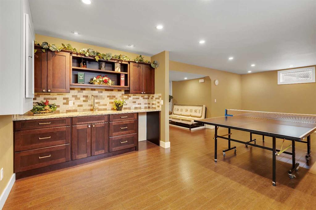 Welcome to this beautifully maintained, fully developed two-storey home nestled on a quiet street in sought-after Harvest Hills. Perfectly located within walking distance to scenic pathways, the pond, playground, and pickleball/tennis courts, this home offers the ideal balance of comfort, convenience, and community living. Step inside to discover stunning caramel Acadia walnut hand-scraped solid hardwood floors (installed June 2019) flowing throughout the main level. At the front of the home, you’ll find a versatile dining room that would also make an excellent home office or children’s playroom. The thoughtfully designed kitchen features ample counter space, plenty of cabinetry, a corner pantry, and stainless steel appliances — perfect for both everyday living and entertaining. The cozy living room is highlighted by a gas fireplace, creating a warm and inviting space for those cold winter nights. Upstairs offers three generously sized bedrooms, including a spacious primary retreat complete with a walk-in closet and full ensuite. A bright bonus room and a full main bathroom complete the upper level, providing plenty of space for a growing family. The fully finished basement is an entertainer’s dream, boasting a massive recreation room and an impressive dry bar with granite countertops, abundant cabinetry and drawers, plus a brand-new bar fridge (included). The spa-inspired 4-piece bathroom features granite countertops, a beautifully tiled shower with dual shower heads, and heated tile flooring with a brand-new thermostat. Additional upgrades and features include: Central air conditioning, New 50-gallon hot water tank (2019), Furnace cleaned and serviced February 25, 2026, Fireplace to be serviced prior to closing, New fridge (June 2023), New Kohler kitchen faucet (2025) with lifetime warranty, all toilets have been replaced. Brand new washer & dryer 02/2026. This move-in-ready home truly shows pride of ownership throughout and offers exceptional value in a fantastic family-friendly location. Don’t miss your opportunity to call this Harvest Hills gem your own!