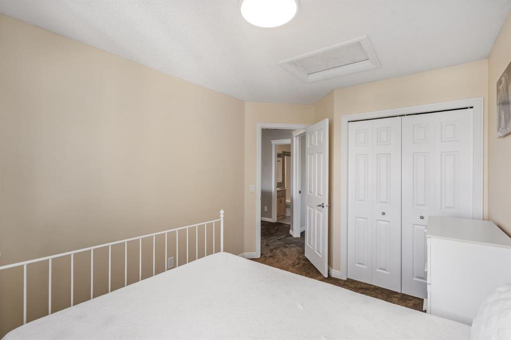 Welcome to the highly coveted neighbourhood of Kincora in Calgary NW. For the growing family, this two-storey, 3 bdrm., 2.5 bath, 2,077 sq. ft. home could be the ideal match. Numerous updates have been completed, including but not limited to central air conditioning (2025), upgraded hot water tank, newer appliances, central vac and new garage door opener. Introducing the main floor starts with the front-facing, attached double garage plus double-parking pad, which covers your parking requirements. Enjoy the benefits of energy-efficient living with professionally installed solar panels – a rare feature in the neighbourhood that helps lower utility costs and supports a sustainable lifestyle. Peace of mind comes standard with a radon remediation system – a valuable health and safety feature that sets this home apart from others in the area. When you step in, the tiled foyer gives you an immediate view of tall ceilings, warm oak hardwood floors, pleasing neutral colours and an overall feeling of spaciousness. The living room lies to the right of the foyer and from there leads to an open concept family room kitchen/dining area flooded with natural light from south-west facing windows. The carpeted family room has a natural gas corner fireplace and is ideal for keeping an eye on the kids while prepping dinner in the adjacent kitchen featuring honey-coloured cabinets, tiled backsplash, an island with a double sink, stainless steel appliances and a corner pantry. The dining area, which leads to a sun-drenched railed deck outside, is a prime entertainment area. A sizable, tiled laundry room with ample closet space, also accessible from the garage. and a 2-pc. bath completes the main level. Moving up to the carpeted second level, a well-windowed bonus room at the head of the stairs offers up endless options – home office, library, play area, etc. The primary bedroom is super spacy with a walk-through 4-pc. ensuite and a walk-in closet adjoining. Two additional bedrooms share a second 4-pc. bath. The basement is unfinished and only limited by your imagination as to developable options. The generous backyard is fenced for privacy and features a sitting area covered with pavers, plus a tiered lawn/shrub area at the rear of the property for those interested in exercising their green thumb. Proximity to Stoney, Shaganappi and Sarcee Trails and the surrounding shopping/restaurant areas, i.e.Creekside Shopping Centre, plus Kincora Pond, soccer fields, playgrounds, schools and churches make Kincora a perfect family-oriented neighbourhood. This home has been carefully maintained and is a delight to view. Call for an appointment today and request your private tour.