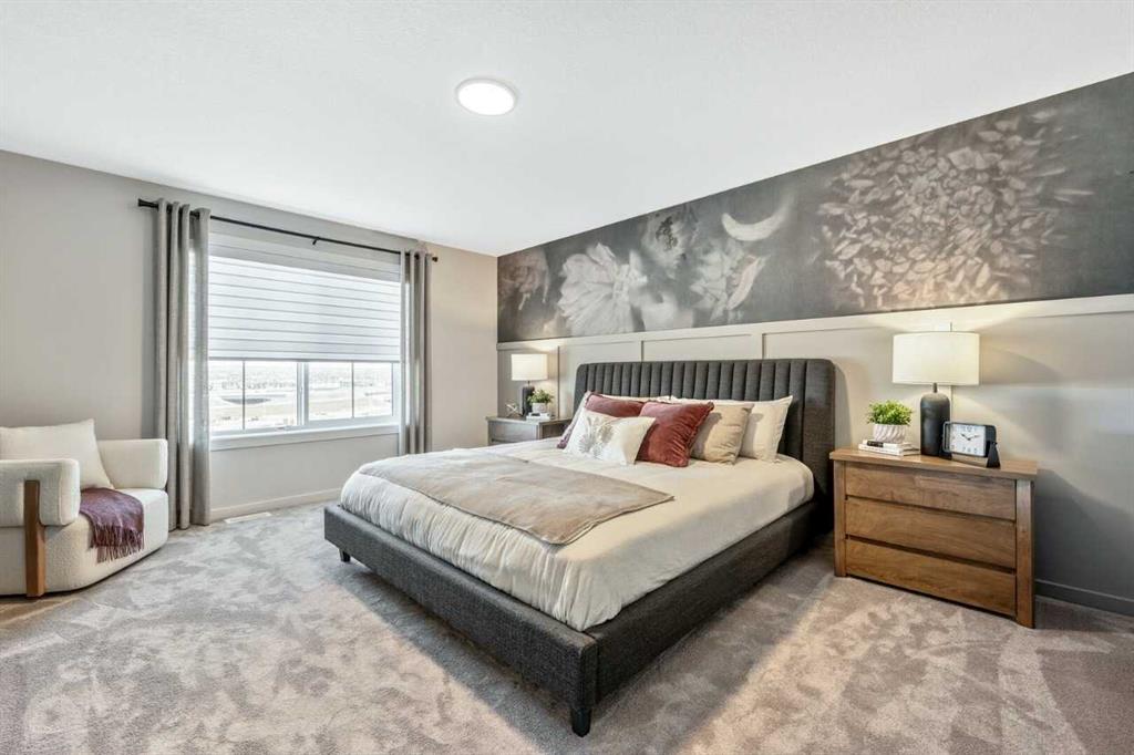 Welcome to your new home! The “Maeve”, expertly crafted by Bedrock Homes, is situated in the community of Osprey Hill; one of Calgary’s newest and most desirable communities. Thoughtfully designed, this home offers spaces for friends & family to gather & share special occasions; as well as providing private areas to retreat to, and relax in. Tentatively scheduled to be completed in April of 2026. Gateway to mountain living with quick, convenient access to Canmore and Banff via Highway 1. Desirable walkout lot offering abundant natural light and seamless indoor-outdoor living. Walkout basement with extended concrete patio—ideal for entertaining or potential future development. Included 12’ x 10’ rear deck, providing additional outdoor living space. Upgraded kitchen features a chimney-style hood fan and full-height cabinetry to the ceiling. Luxurious 5-piece ensuite with dual vanity, soaker tub, and tiled walk-in shower. Spacious bonus room ideal for a family lounge, playroom, or media room. Versatile Main-Floor Flex room perfect for a home office, study, or additional living space. Expansive laundry room offering a refined design, custom sink, and side-by-side washer and dryer. 9’ knockdown ceilings on the main floor enhance the open, airy feel. Elegant railing with modern metal spindles throughout. Convenient walkthrough mudroom connected to a walkthrough pantry. 9’ basement foundation. All photos are representative.