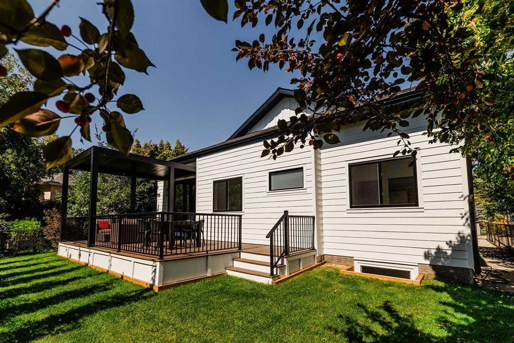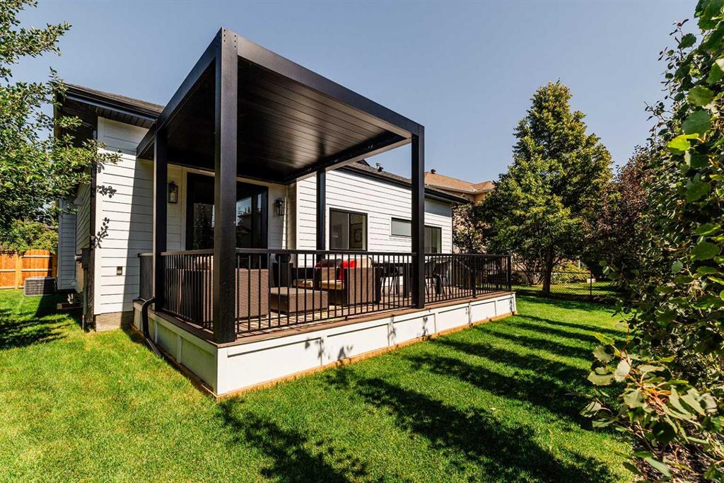 This home features 5 spacious bedrooms, including 3 on the main floor, and a main floor office ideal for remote work. The primary suite is a serene retreat, highlighted by a boutique-style walk-in closet and a spa-like ensuite with elevated finishes. Step outside into your south-facing backyard oasis, where a custom aluminum pergola with automatic louvers shades the brand-new composite deck—the ideal space for outdoor living. The entire property has been regraded and newly sodded, and is lined with 7 new trees for added beauty and privacy.