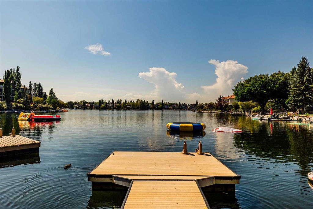 Click brochure link for more details. Tucked away in one of Calgary’s most desirable lake communities, this exceptional 2,412 sq ft bungalow (just under 4,400 sq ft developed) has just undergone a high end renovation taken down to the studs and completely reimagined! This stunning bungalow offers unmatched style, comfort, and craftsmanship—with exclusive lake access and a semi-private dock. From the moment you walk in, you’re welcomed by 10’ ceilings, elegant white oak engineered hardwood, and an abundance of natural light. Designed for everyday luxury, the heart of the home is the gourmet kitchen, complete with a massive island, smart thermostat and smart range, top-of-the-line Café Commercial-Style appliances, and a separate coffee bar—perfect for entertaining or your morning ritual.