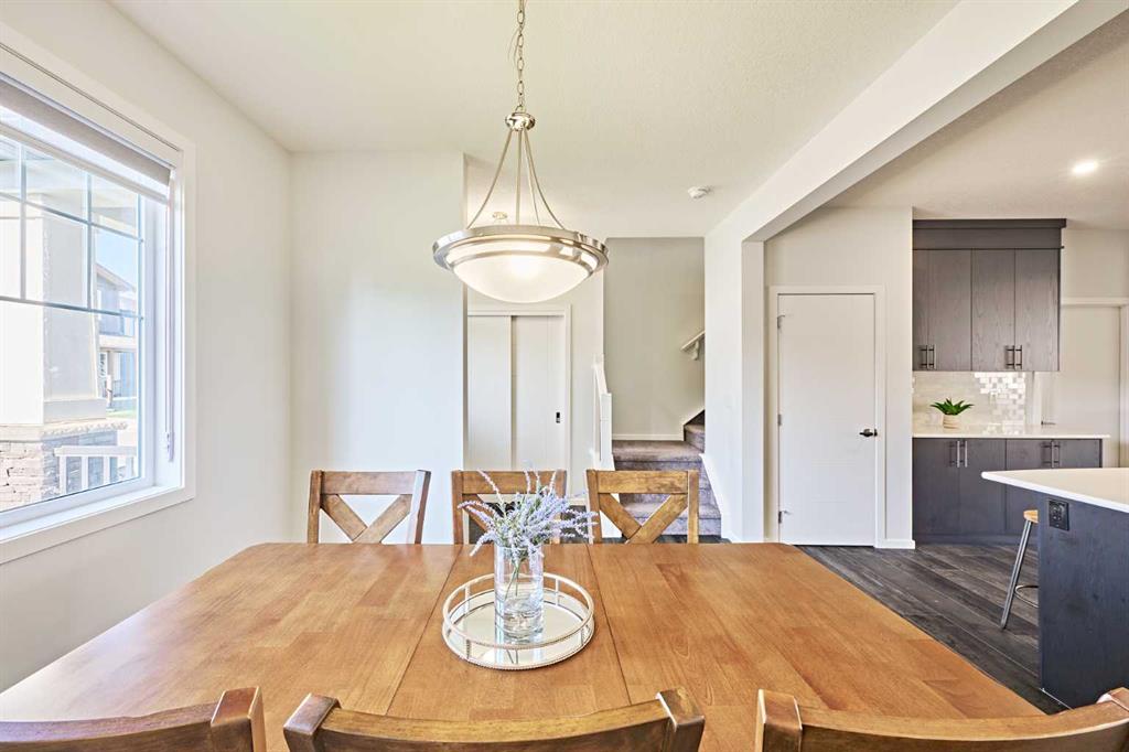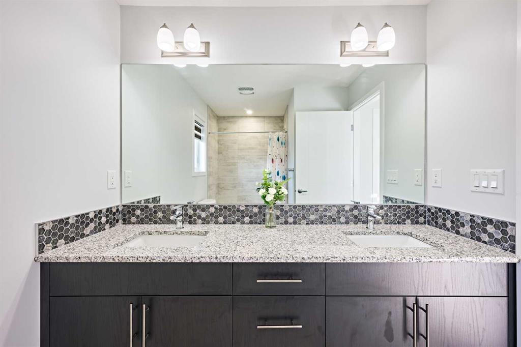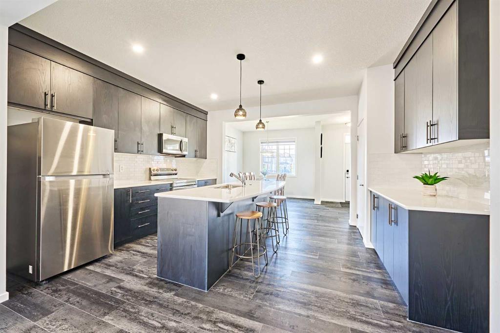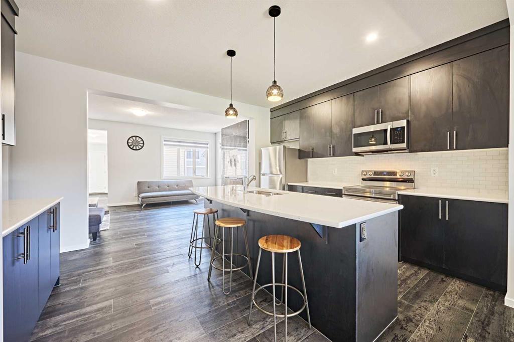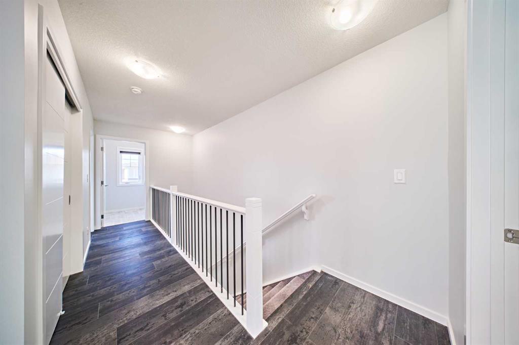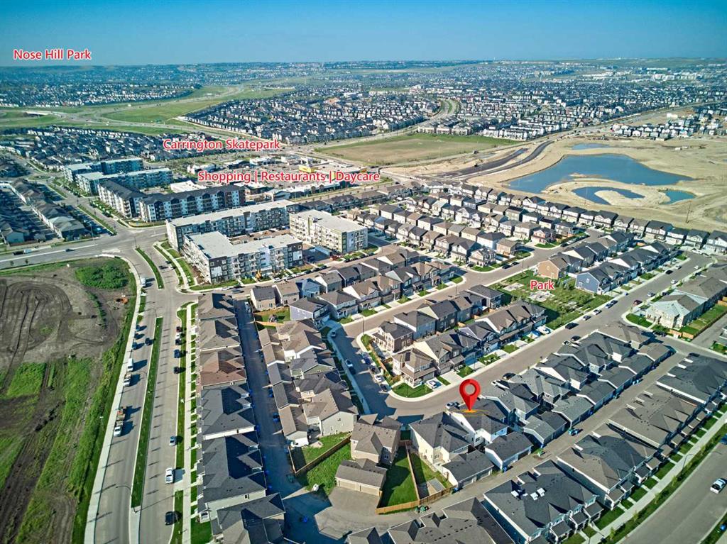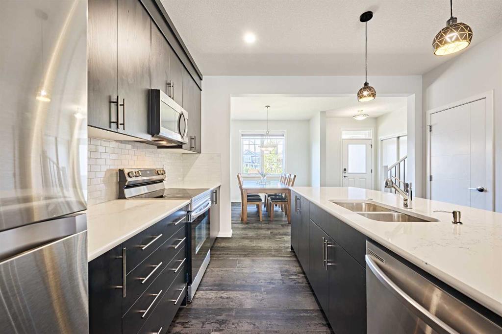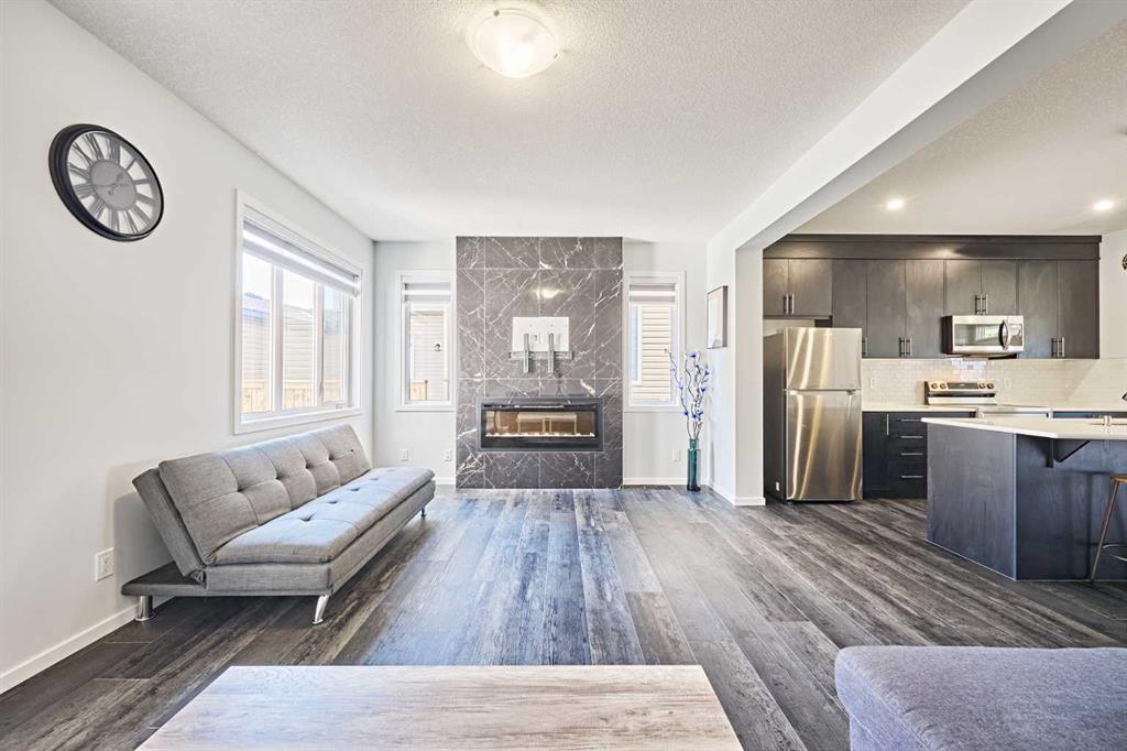 This beautifully upgraded duplex in Carrington offers stylish living with exceptional features throughout. Step through the porch into a spacious front entry, complete with a large closet — perfect for coats and shoes. From there, you’re welcomed into a bright open-concept main floor that seamlessly connects the living room, dining area, and a stunning kitchen featuring a huge quartz island, ceiling-height cabinets, and a custom backsplash. The living room showcases a sleek dark-themed feature TV wall with an electric fireplace, adding a modern and elegant touch. At the back of the home, the mudroom provides direct access to the garage, keeping your space organized and functional. Head upstairs via the upgraded railing, where the primary bedroom boasts a spacious 5-piece ensuite, while two additional bedrooms share another full bathroom. Both bathrooms are upgraded with double vanities and granite countertops. A bright, windowed laundry area completes the upper level. The flooring throughout the main and upper levels is modern luxury vinyl plank, while all bedrooms are finished with stylish and comfortable carpet. The private backyard has just been finished with professionally designed new landscaping, creating the perfect outdoor retreat. The unfinished basement (over 750 sq. ft.) is ready for your personal touch, offering endless potential. Located in a prime area of Carrington, this home is close to future commercial developments and offers convenient access to grocery stores, shopping, dining, parks, and more. Additional upgrades include central A/C installed in 2023, new roof and siding installed in 2024, and a garage door upgrade completed in 2025.
