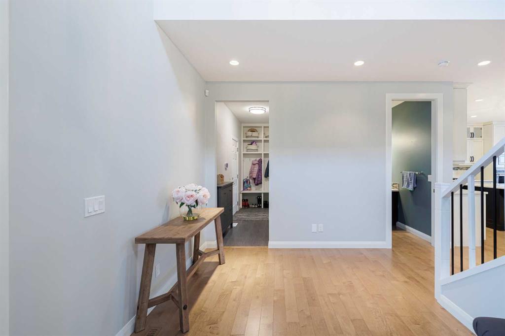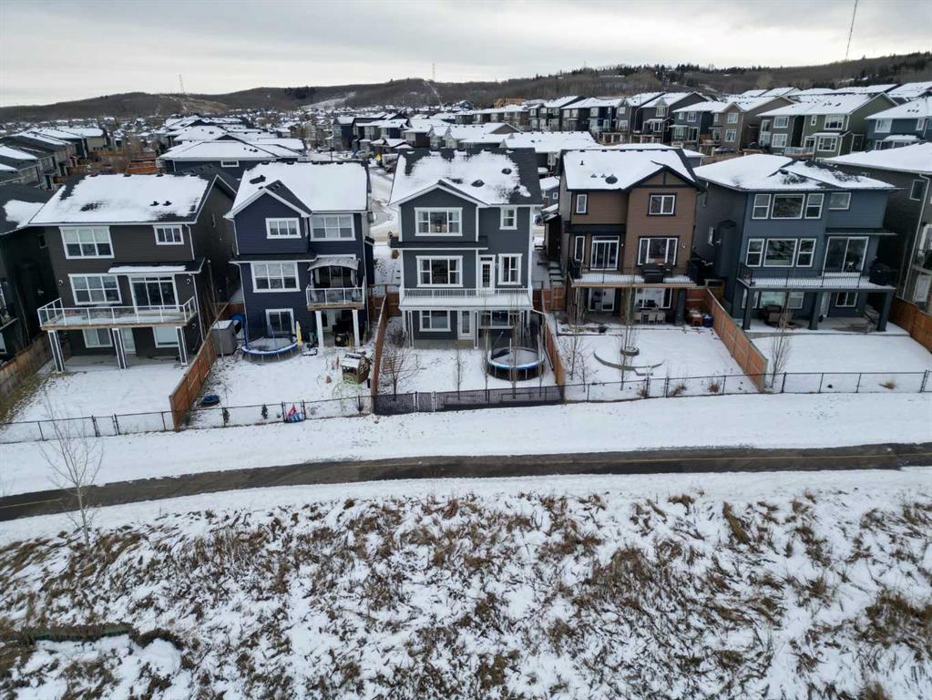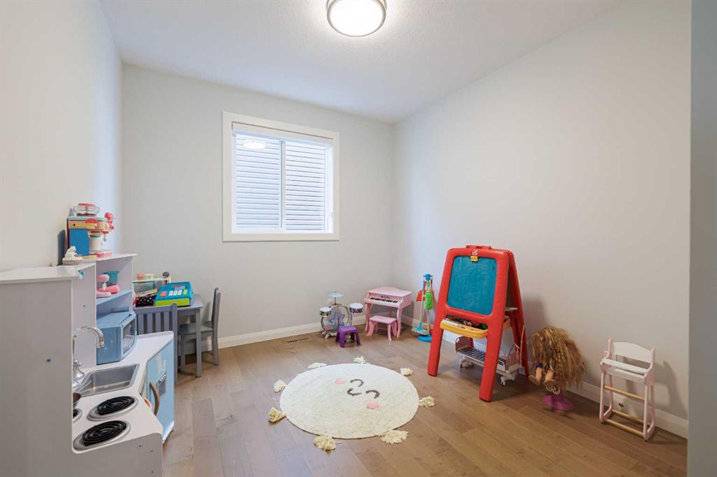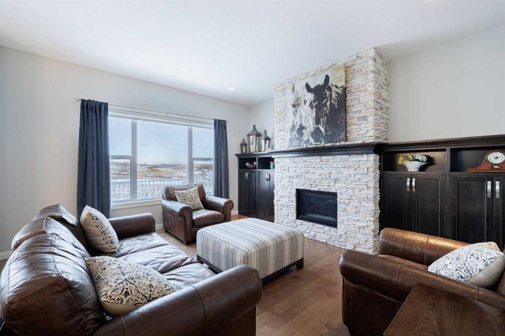 Welcome to this beautifully designed family home that blends thoughtful layout, upscale finishes, and an exceptional outdoor setting backing directly onto a walking path and green space. From the moment you step inside, the open-to-below front entrance creates a striking first impression, filling the space with natural light and a sense of grandeur. Hardwood flooring flows throughout the main level leading to the heart of the home – the stunning kitchen, crafted for both everyday living and entertaining. It features stainless steel appliances, a gas stove, beverage fridge, and a large central island with eating bar, ideal for casual meals or gathering with guests. Ceiling-height cabinetry offers generous storage while maintaining a clean, modern look, and quartz countertops add both style and durability. A spacious walkthrough pantry connects seamlessly to the kitchen, enhancing functionality. Open sightlines to the living room and eating nook create a bright and connected main living area. The eating nook opens directly onto a spacious back deck, extending your living space outdoors and offering peaceful views of the fully fenced backyard and the green space beyond. The living room is warm and inviting, anchored by a stone fireplace with a wooden mantel and custom built-in shelving that adds character and storage. This space is designed for comfort while maintaining a refined aesthetic. This space is complemented by a dedicated office or schoolroom space—perfect for working from home or creating a quiet study area for the family. A 2pc powder and great mudroom space completes this main level. Upstairs, the home continues to impress with three generously sized bedrooms and a large bonus room complete with ceiling fan—an ideal space for family movie nights or a kids’ retreat. The primary suite is a true sanctuary, featuring a spacious layout with dual walk-in closets and a luxurious ensuite. Enjoy the comfort of in-floor heating, a double vanity, jetted soaking tub, standalone shower, and private water closet for a spa-like experience at home. A well-appointed 5-piece main bathroom with counter-height dual vanity serves the additional bedrooms. Convenient upper-level laundry includes a sink and cabinetry for added organization and ease. The fully developed basement offers outstanding additional living space with direct access to the backyard and lower patio. It features a stylish wet bar with drink fridge and sink, a cozy fireplace with stone surround and mantel, custom built-ins, and a large bedroom with oversized window overlooking the backyard. A dedicated gym area provides the perfect space for fitness or hobbies without leaving home. Additional features include a fully heated garage and air conditioning! Backing onto green space with pathway access, this home offers privacy, functionality, and beautiful surroundings—all while delivering high-end finishes and a thoughtful floor plan ideal for modern family living.