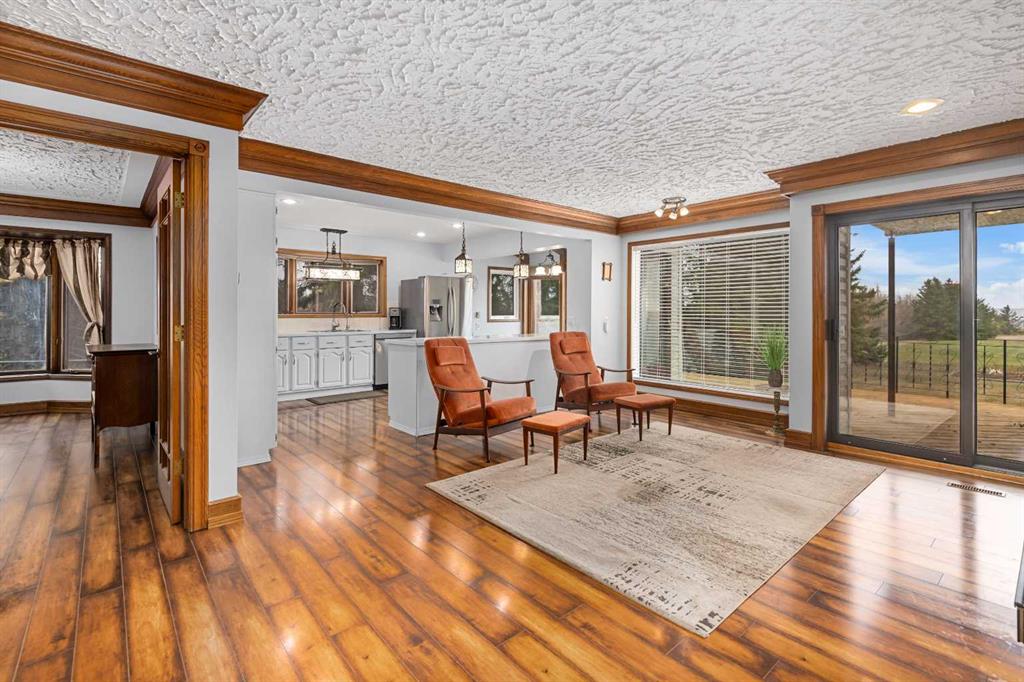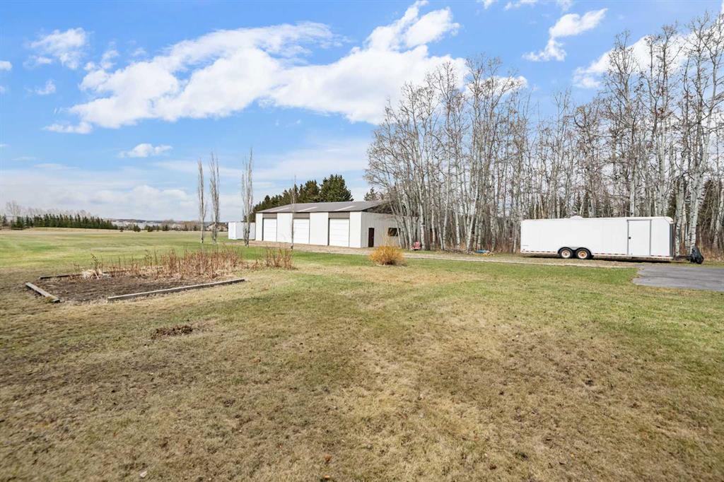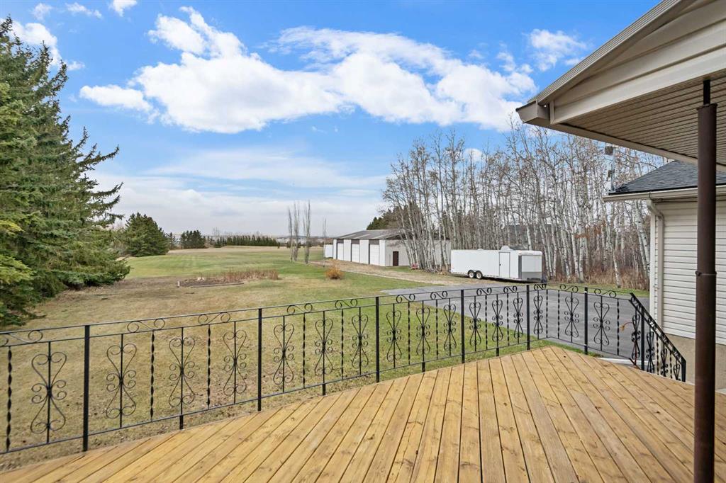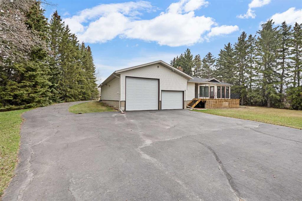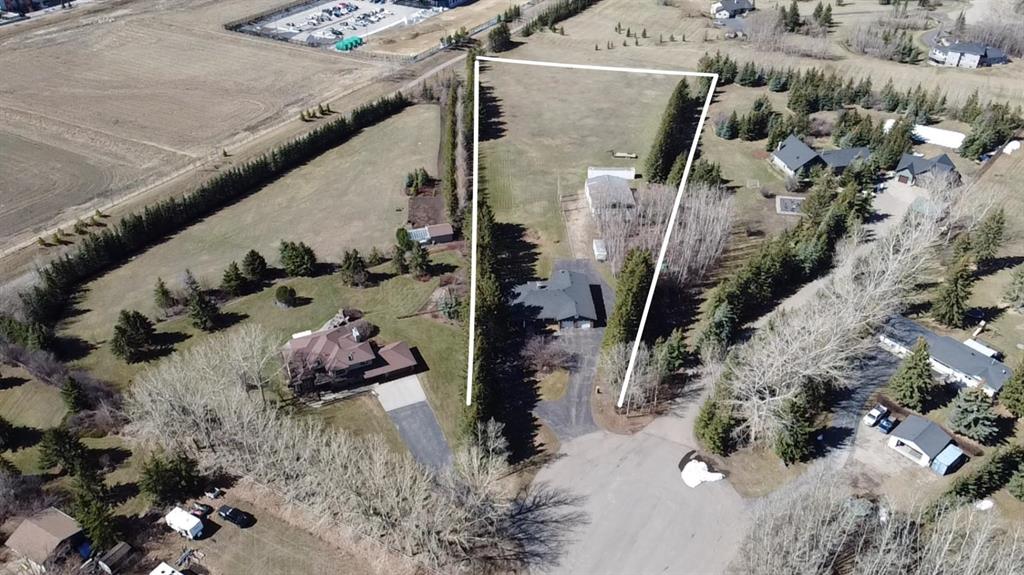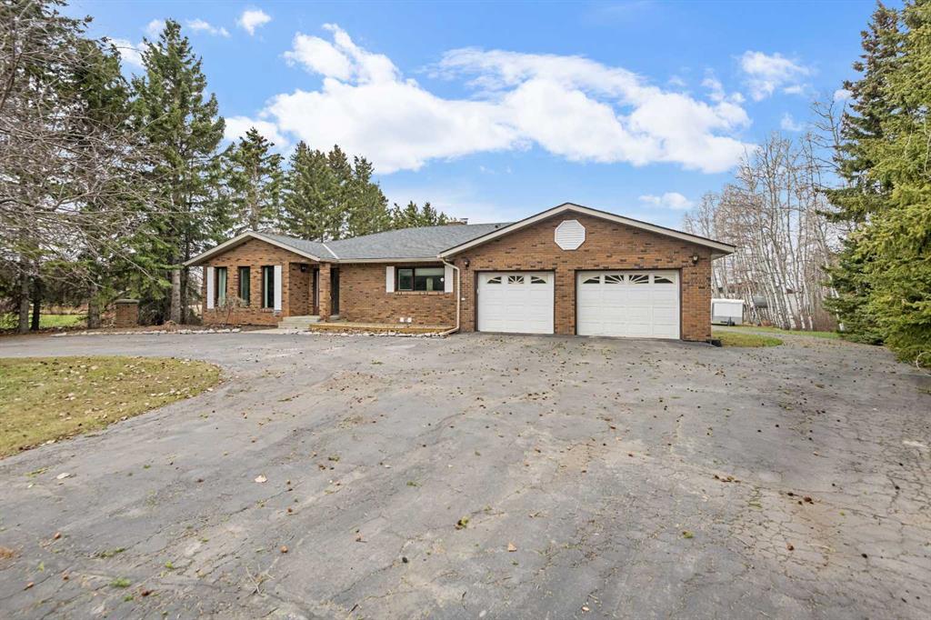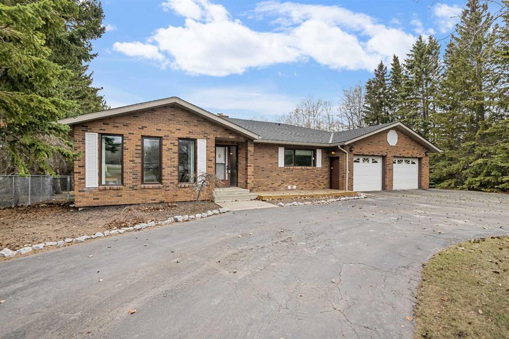 **OPEN HOUSE SUNDAY MAY 3rd FROM 1-3PM** Endless opportunities await in this fantastic acreage right within Airdrie’s city limits with fully paved access to your doorstep. Set on 4 acres with beautiful SW exposure, this property captures mountain views, open skies & the kind of space that is hard to find this close to all amenities. Mature trees & established landscaping create a private, welcoming setting from the moment you arrive via the circular driveway. If you have been waiting for the ultimate garage & shop setup, this one delivers right from the start. This property features a double attached 24×25 garage, a rear tandem 24x26x31 garage with an 11’ door, plus an impressive 40×60 shop with concrete floor, three 10×10 doors & skylights that bring in natural light. Whether it is vehicles, equipment, hobbies or storage, there is room here for everything. This custom built bungalow offers over 1800 sq ft up + almost 1700 sq ft down with a warm, traditional layout filled with timeless wood detailing, crown molding & a classic stone fireplace. The kitchen has been updated with newer appliances & lighting & opens into a bright nook & living area that look out toward the trees & mountains. A separate formal dining room easily hosts large gatherings, while a front living room with French doors adds flexibility & additional living space. The main floor has 2 bedrooms, including a spacious primary with a walk in closet & updated 3 pc ensuite. There is also a 4 pc bathroom with jetted tub. A curved staircase leads to the fully developed basement featuring a massive rec room, two additional bedrooms, a 3 pc bathroom & a gym or flex space, making it ideal for families or guests. There is another staircase as well that leads back upstairs. Additional features include a fenced dog run tucked along the east side of the home, plenty of yard space for kids or entertaining & a peaceful cul de sac location. Updates over the years include many main floor windows updated to triple pane, rear garage heater, lights & doors, furnace motor & shingles. Located just steps from the new Airdrie Regional Park, this property adds even more access to walking paths, green space & future amenities, making it a great fit for both hobbyists & families. Close to schools, shopping & all amenities in Airdrie, with Calgary within easy reach. Acreage living like this, with this level of convenience, is hard to find. Check out the 3D walkthrough & video.