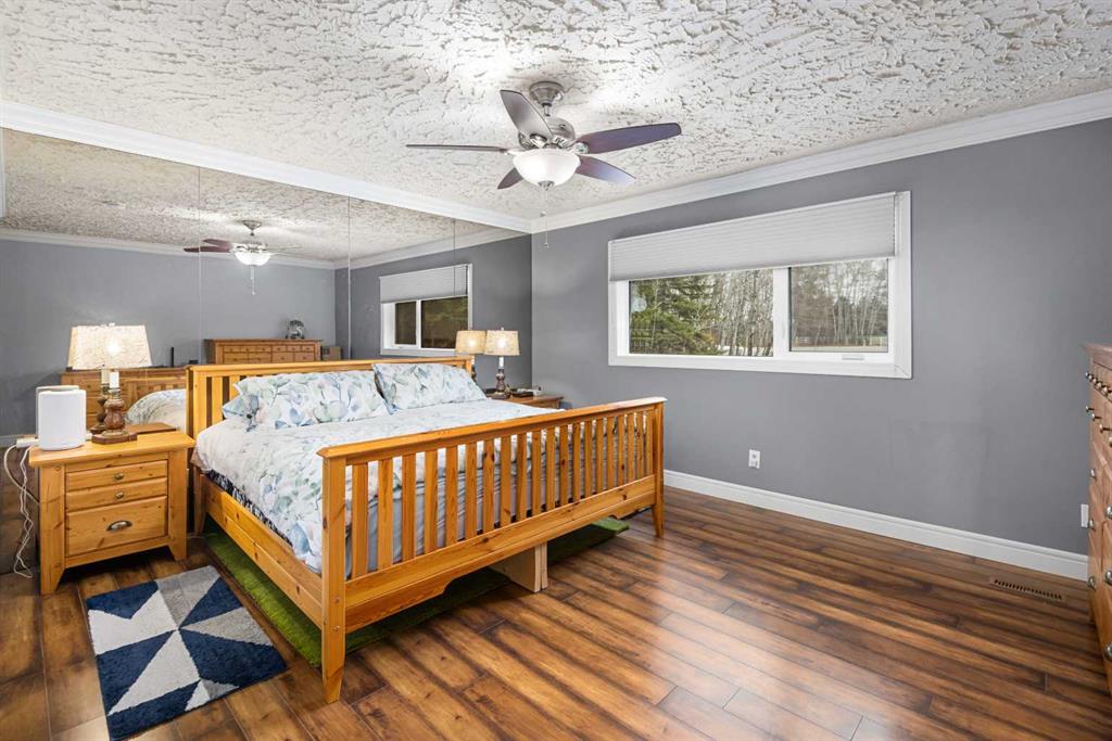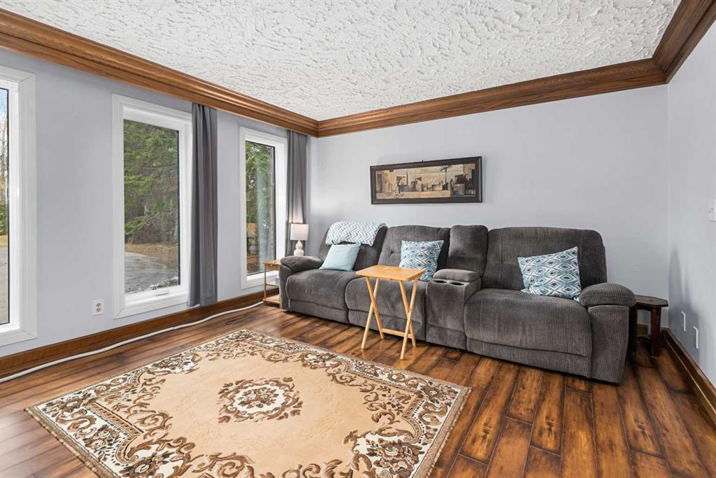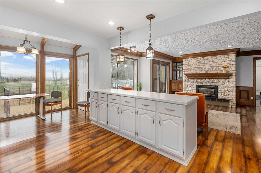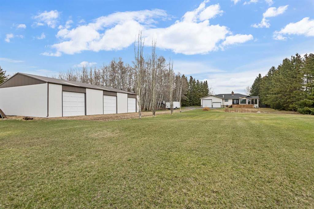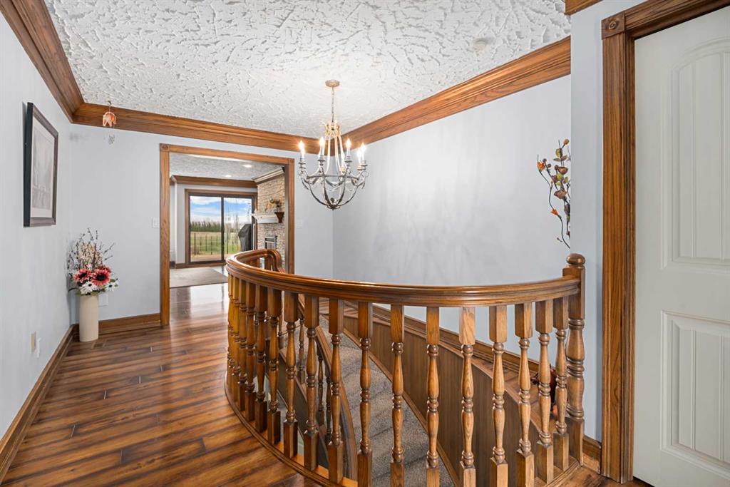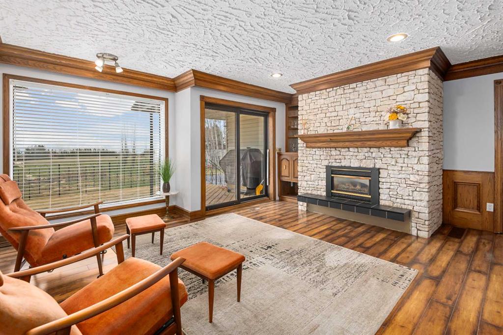 **OPEN HOUSE SUNDAY MAY 3rd FROM 1-3PM** Endless opportunities await in this fantastic acreage right within Airdrie’s city limits with fully paved access to your doorstep. Set on 4 acres with beautiful SW exposure, this property captures mountain views, open skies & the kind of space that is hard to find this close to all amenities. Mature trees & established landscaping create a private, welcoming setting from the moment you arrive via the circular driveway. If you have been waiting for the ultimate garage & shop setup, this one delivers right from the start. This property features a double attached 24×25 garage, a rear tandem 24x26x31 garage with an 11’ door, plus an impressive 40×60 shop with concrete floor, three 10×10 doors & skylights that bring in natural light. Whether it is vehicles, equipment, hobbies or storage, there is room here for everything. This custom built bungalow offers over 1800 sq ft up + almost 1700 sq ft down with a warm, traditional layout filled with timeless wood detailing, crown molding & a classic stone fireplace. The kitchen has been updated with newer appliances & lighting & opens into a bright nook & living area that look out toward the trees & mountains. A separate formal dining room easily hosts large gatherings, while a front living room with French doors adds flexibility & additional living space. The main floor has 2 bedrooms, including a spacious primary with a walk in closet & updated 3 pc ensuite. There is also a 4 pc bathroom with jetted tub. A curved staircase leads to the fully developed basement featuring a massive rec room, two additional bedrooms, a 3 pc bathroom & a gym or flex space, making it ideal for families or guests. There is another staircase as well that leads back upstairs. Additional features include a fenced dog run tucked along the east side of the home, plenty of yard space for kids or entertaining & a peaceful cul de sac location. Updates over the years include many main floor windows updated to triple pane, rear garage heater, lights & doors, furnace motor & shingles. Located just steps from the new Airdrie Regional Park, this property adds even more access to walking paths, green space & future amenities, making it a great fit for both hobbyists & families. Close to schools, shopping & all amenities in Airdrie, with Calgary within easy reach. Acreage living like this, with this level of convenience, is hard to find. Check out the 3D walkthrough & video.