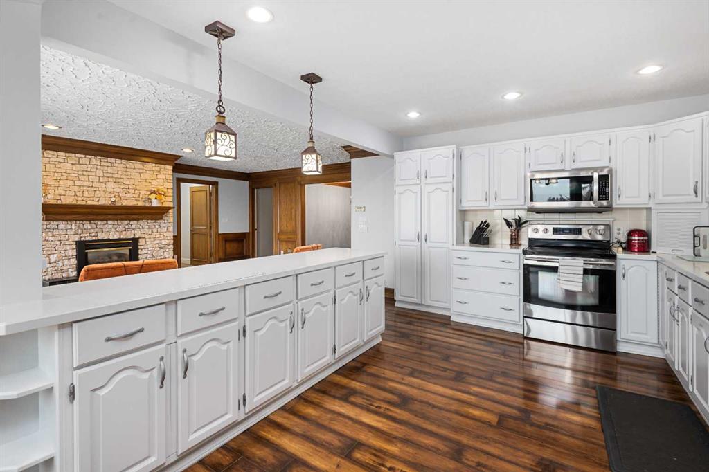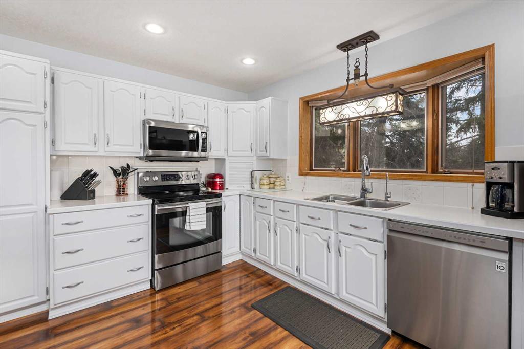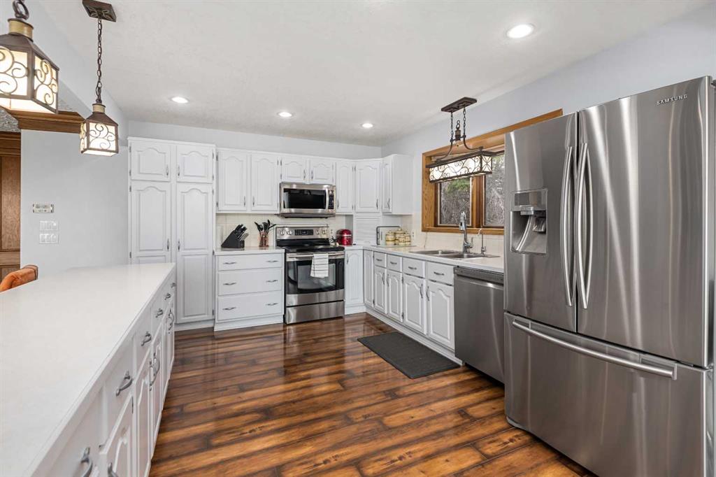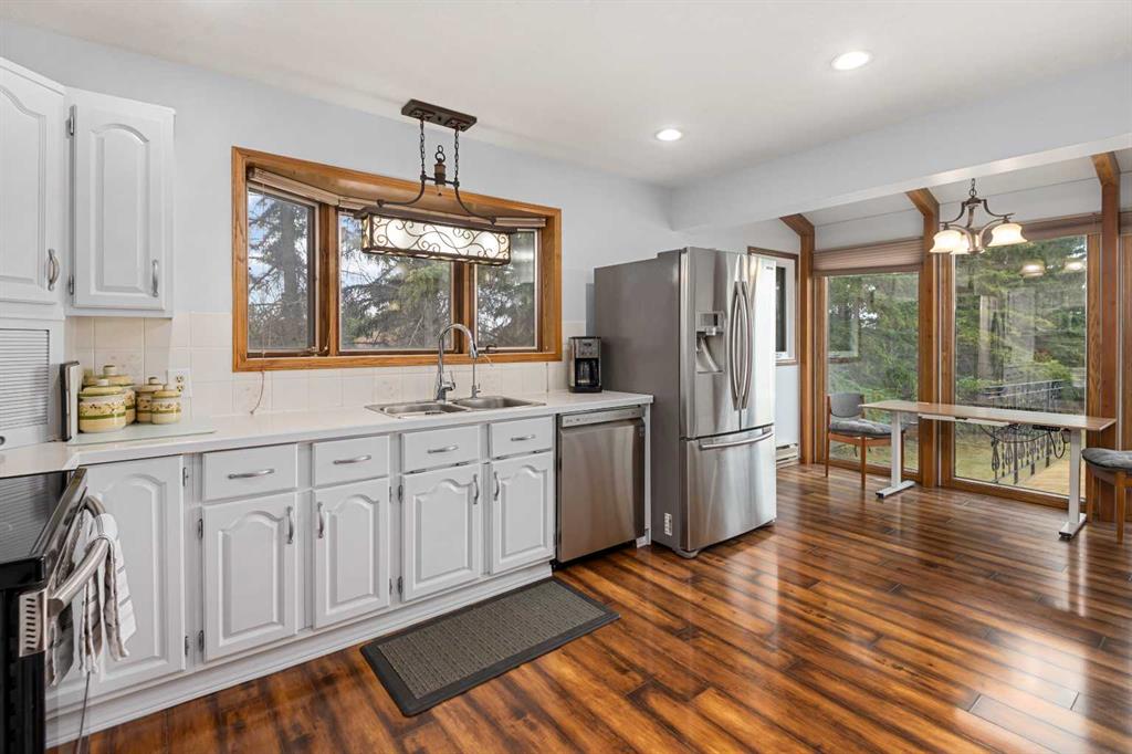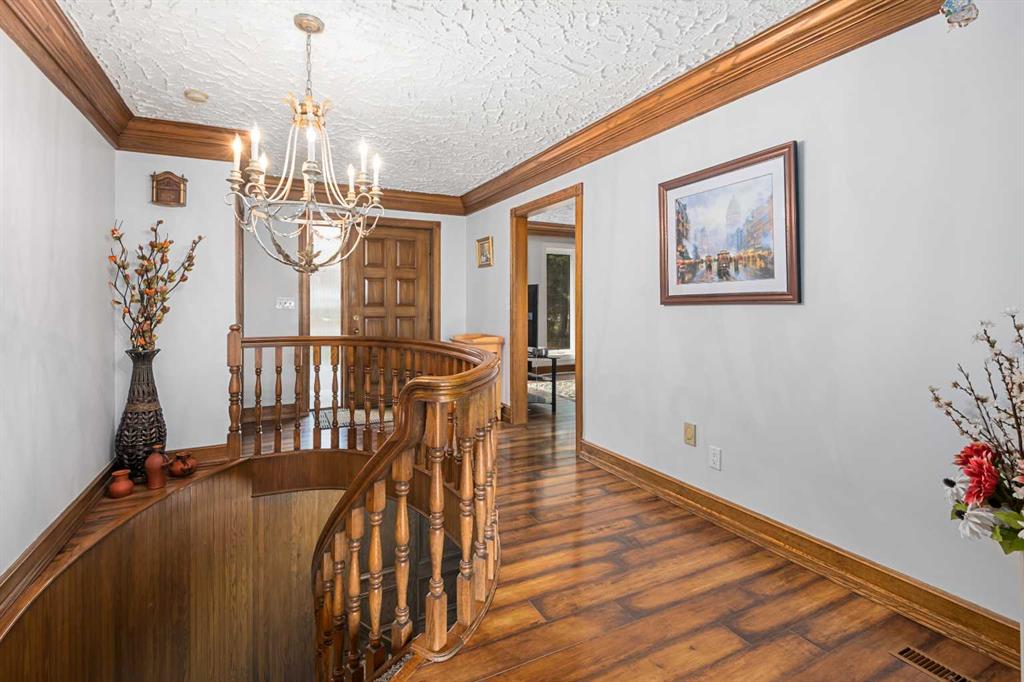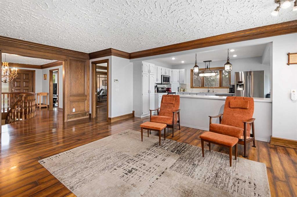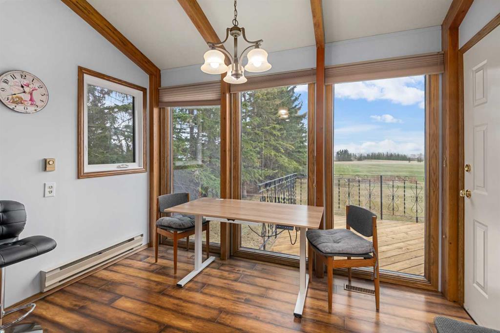**OPEN HOUSE SUNDAY MAY 3rd FROM 1-3PM** Endless opportunities await in this fantastic acreage right within Airdrie’s city limits with fully paved access to your doorstep. Set on 4 acres with beautiful SW exposure, this property captures mountain views, open skies & the kind of space that is hard to find this close to all amenities. Mature trees & established landscaping create a private, welcoming setting from the moment you arrive via the circular driveway. If you have been waiting for the ultimate garage & shop setup, this one delivers right from the start. This property features a double attached 24×25 garage, a rear tandem 24x26x31 garage with an 11’ door, plus an impressive 40×60 shop with concrete floor, three 10×10 doors & skylights that bring in natural light. Whether it is vehicles, equipment, hobbies or storage, there is room here for everything. This custom built bungalow offers over 1800 sq ft up + almost 1700 sq ft down with a warm, traditional layout filled with timeless wood detailing, crown molding & a classic stone fireplace. The kitchen has been updated with newer appliances & lighting & opens into a bright nook & living area that look out toward the trees & mountains. A separate formal dining room easily hosts large gatherings, while a front living room with French doors adds flexibility & additional living space. The main floor has 2 bedrooms, including a spacious primary with a walk in closet & updated 3 pc ensuite. There is also a 4 pc bathroom with jetted tub. A curved staircase leads to the fully developed basement featuring a massive rec room, two additional bedrooms, a 3 pc bathroom & a gym or flex space, making it ideal for families or guests. There is another staircase as well that leads back upstairs. Additional features include a fenced dog run tucked along the east side of the home, plenty of yard space for kids or entertaining & a peaceful cul de sac location. Updates over the years include many main floor windows updated to triple pane, rear garage heater, lights & doors, furnace motor & shingles. Located just steps from the new Airdrie Regional Park, this property adds even more access to walking paths, green space & future amenities, making it a great fit for both hobbyists & families. Close to schools, shopping & all amenities in Airdrie, with Calgary within easy reach. Acreage living like this, with this level of convenience, is hard to find. Check out the 3D walkthrough & video.