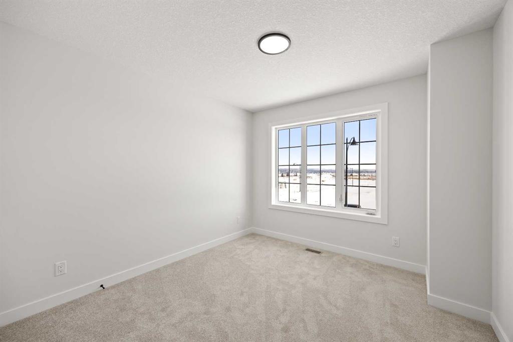 Welcome to the MacKenzie 22 by Partners Homes, a refined paired home with a front attached garage in the highly desirable northwest community of Upper Greenwich. This fully upgraded, move in ready residence offers a sophisticated blend of modern design and functional living in one of Calgary’s most connected and amenity rich neighbourhoods. The main level is thoughtfully designed for both entertaining and everyday comfort. Nine foot ceilings and expansive windows create a bright, open feel throughout. The chef inspired kitchen anchors the home with upgraded cabinetry, quartz surfaces, and a premium appliance package featuring a gas cooktop, built in wall oven, and built in microwave. A generous island flows seamlessly into the dining area and great room, where an electric fireplace adds warmth and architectural presence. The rear deck extends the living space outdoors for effortless hosting. Upstairs, a central bonus room provides flexible space for a media lounge or home office. The primary suite offers a walk in closet and a spa inspired ensuite with dual vanities, quartz counters, and a fully tiled glass shower. Two additional bedrooms, an upgraded main bathroom, and upper level laundry complete the second floor. Architectural details include black plumbing and lighting fixtures, soft close cabinetry, knockdown ceilings, pot lighting, fibre cement siding with stone accents, exposed aggregate entry, and professionally completed front yard landscaping. Located just minutes from the Bow River pathway system, Calgary Farmers’ Market West, WinSport, and northwest retail amenities, Upper Greenwich delivers a rare balance of lifestyle and convenience. Available for immediate possession. A rare opportunity to secure a completed, design forward home in one of northwest Calgary’s most sought after communities