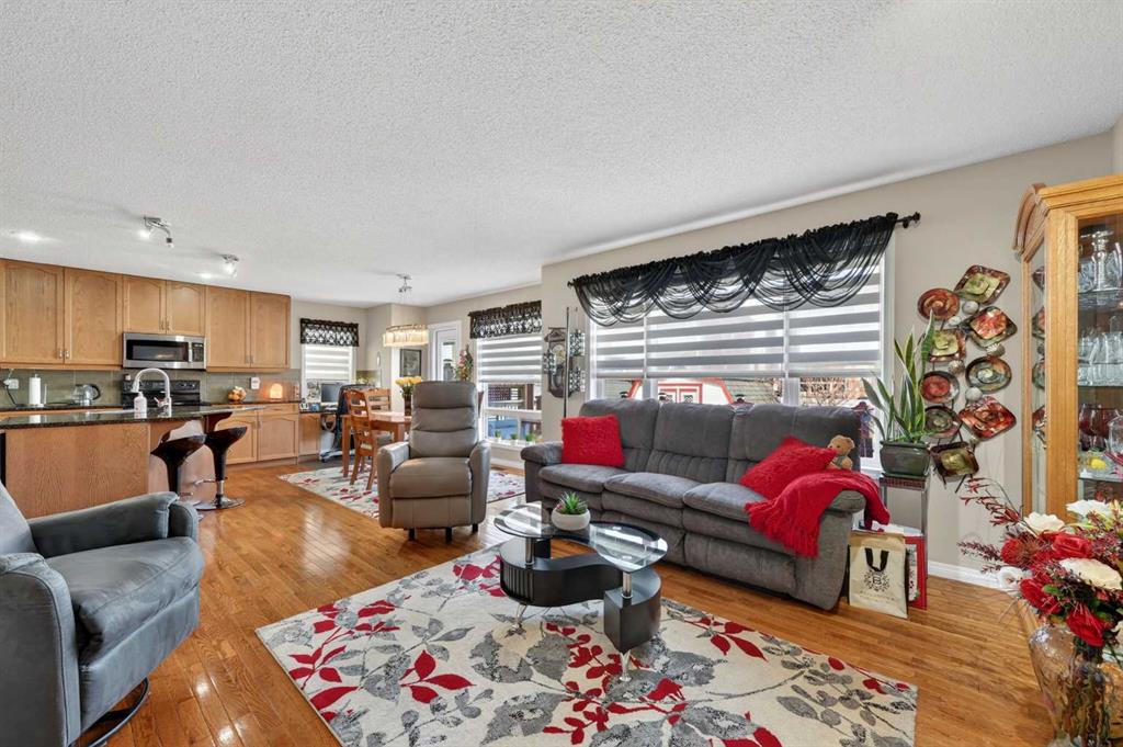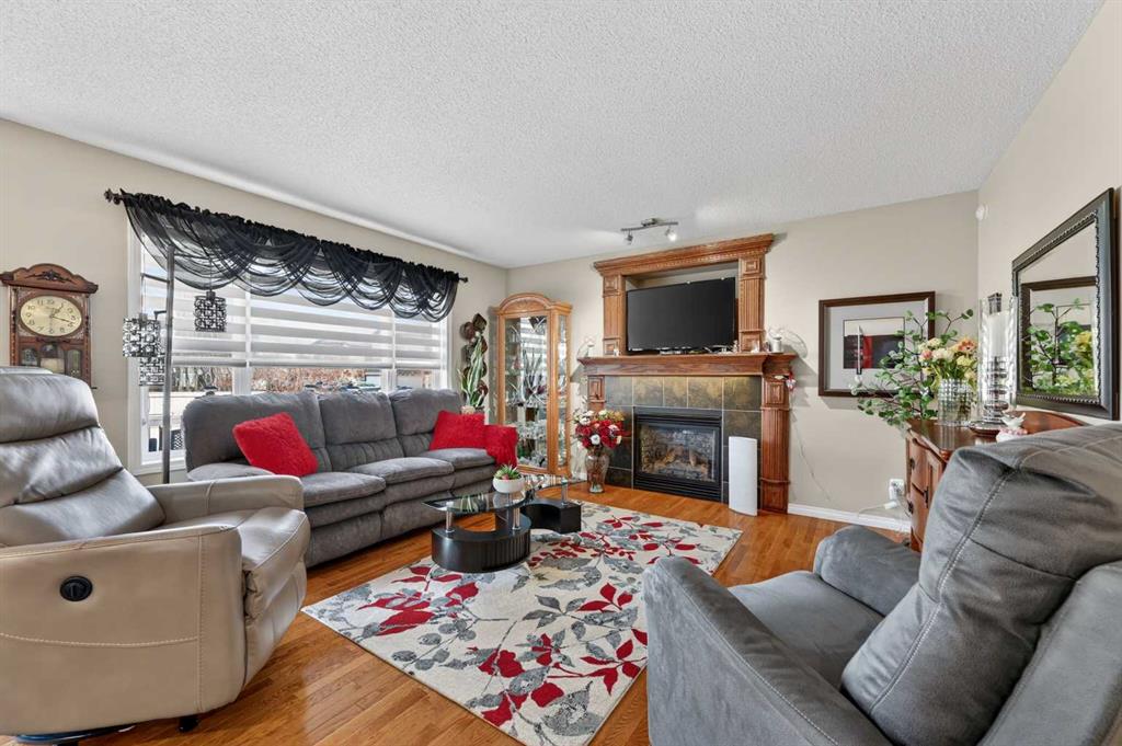 Proudly situated on a prime over-sized interior corner lot (i.e. loads of parking), this immaculate residence offers striking curb appeal with upgrades throughout. Extra wide concrete front steps lead into a bright and open vaulted foyer, functional gourmet kitchen with granite counters/island/breakfast bar/ceiling height solid-wood cabinetry/substantial walk-through pantry, spacious dining area to a vast 14′ x 25′ rear deck/fully landscaped/fenced yard, a cozy living room with feature gas fireplace, powder room and laundry/mudroom; pristine hardwood flooring throughout. Upper level houses a sizeable bonus room, primary bedroom with large walk-in closet and ensuite with soaker tub/separate stand-up shower, 2 additional generously-sized bedrooms and four-piece main bathroom. Lower level is undeveloped and awaits your future plans; serves as a fully functioning workshop at present. Oversized (18′ X 24′) double attached garage round this gem out.