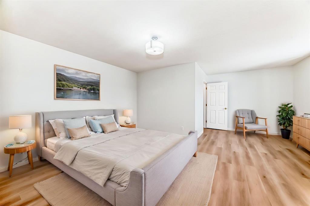 The upper living room has soaring ceilings and oversized windows bringing in loads of natural light. A bedroom or office finishes this level. Your private primary suite is the entire top floor, with a full ensuite, and large walk-in closet. The fully finished walk-out basement is perfect for guests, including their own private entrance, bedroom and full bathroom. Beautiful Vinyl Plank flooring has been upgraded throughout the home. Central Air is incl. to help you enjoy your sunny West exposure. You’ll have an easy commute to downtown and/or mountains, with parks, public transit, shopping, pathways all nearby. Don’t miss this opportunity and call for your viewing today!