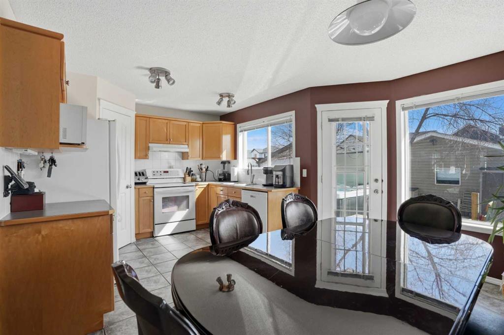 Showstopping Backyard | Incredible Location | Steps Away from Tarington Playground, Park & Baseball Diamond, Off Leash Dog Park & Garden | Gorgeous Family Home | Finished Basement | 4 Bedrooms | 2.5 Bathrooms | Great Open Floor Plan | High Ceilings | Gas Fireplace | Bay Windows | Incredible Natural Light | North Facing Frontage | Luxury Tile & New Carpet Flooring | 3 Upper Level Bedrooms | 1 Basement Bedroom | Basement Rec Room for Entertaining | Basement Laundry | Stunning Backyard | Deck with Bench Seating | Concrete Patio | Garden Boxes | 2x Sheds | Lawn | Rear Double Detached Garage | Additional Private Stall Parking Beside Garage | Rear Lane | Fresh Interior Paint 2026 | Welcome home to 155 Tarington Green NE, a beautiful 2-storey family home boasting 1,702 SqFt of developed living space throughout the main, upper and basement levels. Open the front door to a bright and welcoming open floor plan foyer and living room with North facing bay windows filling the home with natural light. The living room is spacious and is centred with a gas fireplace adding both style and comfort to this space. At the rear of the home you’ll find the open concept kitchen and dining area. The kitchen is outfitted with laminate countertops, maple cabinets, white appliances and a corner pantry for dry goods storage. The dining room bay windows overlook the deck and backyard. The door in the dining room connects to the wooden deck making this the premier home for indoor/outdoor living in the summer months! The main level is complete with a 2pc powder room. Head up the new plush carpet flooring upstairs where you have 3 bedrooms and a 4pc bath. The primary bedroom has a great walk-in closet! The 4pc bath has a tub/shower combo and single vanity with storage below. Downstairs, the finished basement has an additional bedroom and a 3pc bathroom! The rec room is a great multi-use space; entertaining friends and family, a kids playroom, home office- you name it! The laundry is located in the basement and there is plenty of storage here too for your seasonal items. Outside, the fully fenced backyard is a true showstopper, offering an abundance of space to entertain, relax, and enjoy outdoor living. Invite all your friends to relax & unwind this summer! The large deck and concrete patio provide you with both living and dining spaces outside! The lawn extends from the concrete patio to your rear detached double garage. An additional single car parking stall is beside your double garage providing you with a 3rd parking spot designated to your home. Street parking is readily available in the front of the house too. Fresh upgrades within the last 5 years include Siding, Exterior Paint, Roof (Impact Shingles Replaced) and the furnace is on the Action Furnace maintenance plan. The location is incredible, this home is surrounded by great parks, playgrounds, walking paths and the CBE Ted Harrison School is a 5 minute walk. This home is one you won’t want to miss, book your showing today!