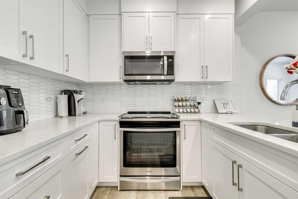 Here it is! Exceptionally private and quiet ravine-backing home. Original owners have meticulously maintained this home, it’s in excellent condition. Rare corner unit offering extra privacy, more natural light, and fewer shared walls. The ravine offers an extremely private and quiet setting with peaceful views and no neighbours behind. Fully-developed walk-out basement with a private concrete patio — ideal for additional living space, a home office, or guest suite. 1,470 sq. ft. above grade, plus a fully developed basement with an additional 543 sq. ft.; over 2000 developed. Basement includes a 4-piece bathroom. 9-foot ceilings throughout the main living areas with a modern, open-concept design. Vaulted ceilings in the primary bedroom, creating a bright and spacious retreat, and includes a private ensuite washroom with dual sinks. Large windows throughout the home, flooding the space with abundant natural light. Extra-large single attached garage with more than sufficient space for storage. Upgrades include: bright lighting throughout the home, kitchen cabinets and backsplash, stair railing, quartz countertops in the kitchen and all washrooms, modern appliances and more. Neutral, clean colours throughout, making it easy to decorate or maintain a modern design. Backing onto natural green space with two scenic ponds just steps away, perfect for walks or biking with extensive trails nearby, ideal for families, pet owners, and outdoor enthusiasts. Located in the highly family-friendly Crestmont community, known for its welcoming atmosphere; multiple playgrounds, and a shared community centre hosting regular events and activities, including a playground and a splash-park. Daycare and local shops just a 1-minute walk away, offering unmatched convenience. Multiple quick and easy access points to Highway 1, making mountain getaways effortless. Canmore in under 1 hour, Bragg Creek in under 30 minutes. Winsport just minutes away. Proactive condo board. Condo management handles snow removal and landscaping year-round, doing an excellent and timely job, always completing tasks as soon as possible. Extremely low utility bills thanks to ultra-efficient heating, insulation, and an HRV system. High-capacity water softener included. Rough-in for air conditioning already in place. Visitor parking available for friends and family. Gas BBQ hookup on the upper balcony. Lower walk-out patio on a private concrete pad, ideal for relaxing while enjoying the ravine’s privacy and quiet.