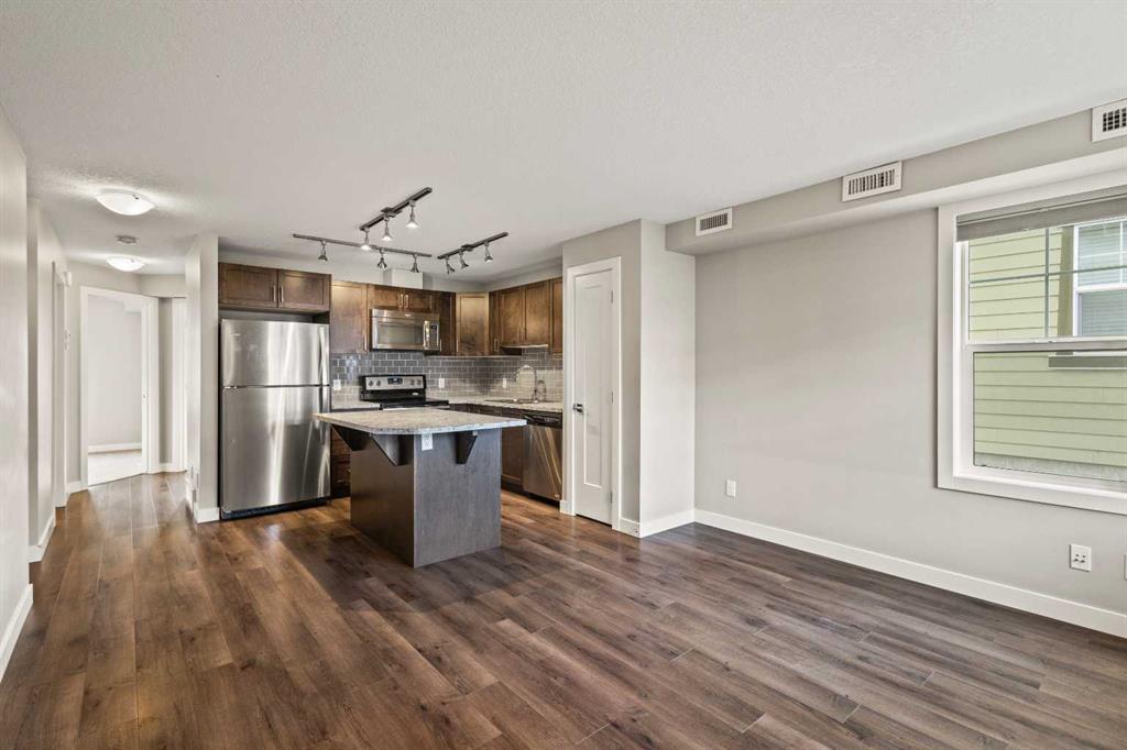 Great opportunity to own this 2-bedroom end-unit townhome under $300K with low condo fees. This main-floor unit offers true convenience with everything located on one level. The open-concept layout features a bright living room and a functional kitchen with ample cabinetry and an island with seating. A full bathroom with in-suite laundry is located just off the kitchen, while both bedrooms are tucked away for privacy. The primary bedroom includes a walk-in closet, and the second bedroom is similarly spacious.