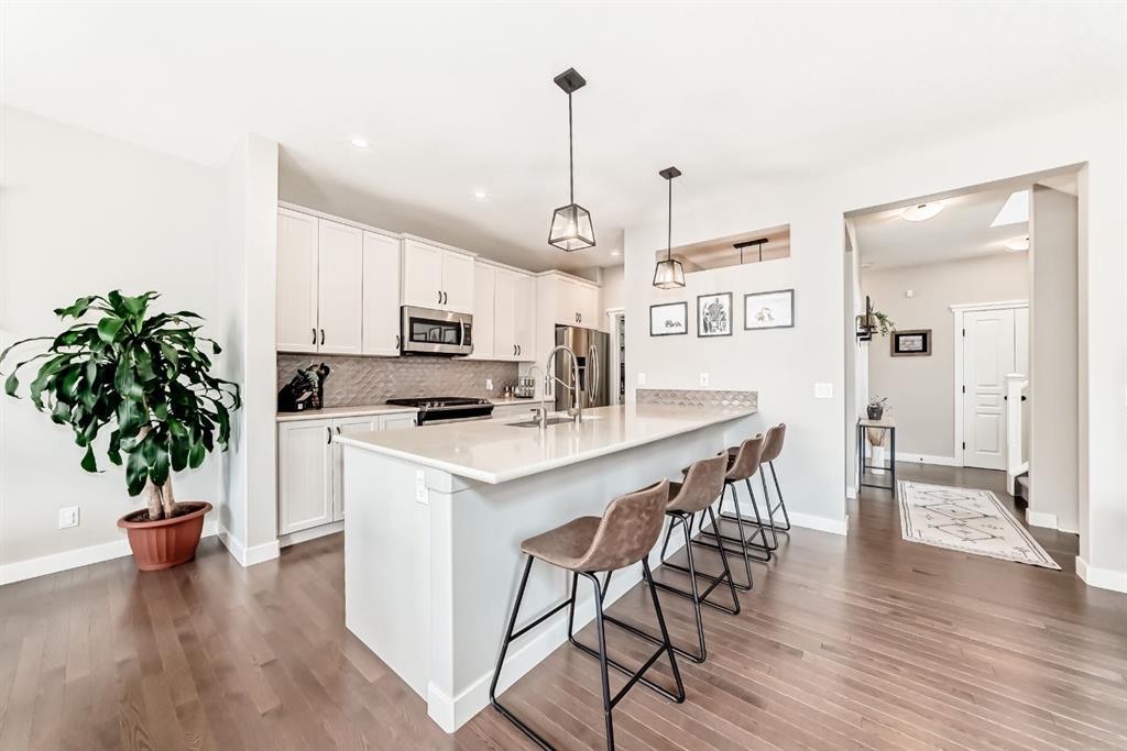 The main floor showcases a bright and airy open-concept design, enhanced by extra windows in the dining nook that flood the space with natural light. The elegant kitchen features quartz countertops, off-white shaker cabinetry, an upgraded backsplash, and stainless steel appliances including a gas stove—perfect for both everyday living and entertaining. The kitchen also features an 8-stage filtration reverse osmosis Waterdrop undersink filter.The kitchen also features a new (2026) custom-built walk-through butler’s pantry. A brand new (2026) custom mudroom was also completed to provide even more function and organization for the family. Just off the kitchen, a versatile office nook provides the ideal space for working from home, helping with homework, or staying organized while keeping an eye on the family room.