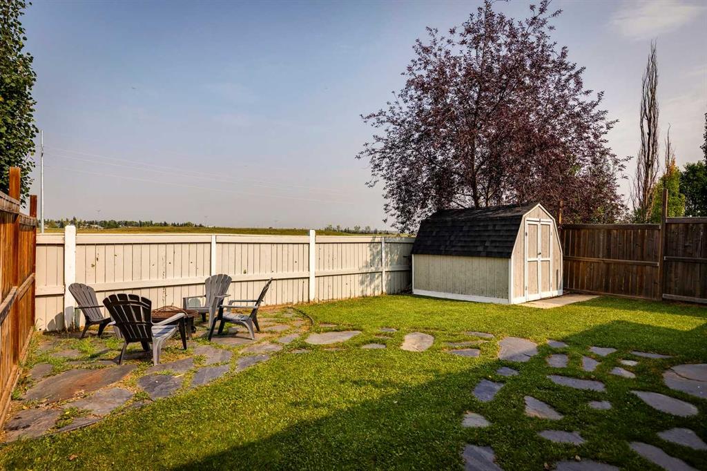 Welcome to this beautifully renovated and meticulously designed home in Lake Chaparral, offering over 2,300 sq. ft. of fully developed living space just one block from the lake. Step into the modern chef’s kitchen, featuring a massive 10-ft island that’s perfect for cooking and entertaining, granite countertops, a five-burner gas stove, stainless steel appliances, oversized cabinetry, built-in wine rack, and a spacious pantry. The open floor plan flows seamlessly into the dining and living areas, making it ideal for hosting family and friends. Upstairs, unwind in the bright and airy bonus room, complete with a cozy fireplace and plenty of space for movie nights (wired for surround sound). The primary retreat offers a stylish ensuite where you can relax in comfort, while two additional bedrooms and a large 4-pc bath complete this level. The fully developed basement extends your living space with a potential guest suite, full bathroom, and generous closet/flex area, ideal for a fourth bedroom, home gym, entertainment room or playroom. Enjoy entertaining outdoors in your private backyard oasis backing onto open green space with no neighbors behind, it feels like country living in the city. The mature landscaping, deck, and firepit area make this yard perfect for summer evenings. Appreciate the convenience of the exterior, roof and gutters all updated in 2023! Tucked away on a quiet cul-de-sac and just a short walk to Lake Chaparral, this home truly has it all. Do not miss this outstanding opportunity