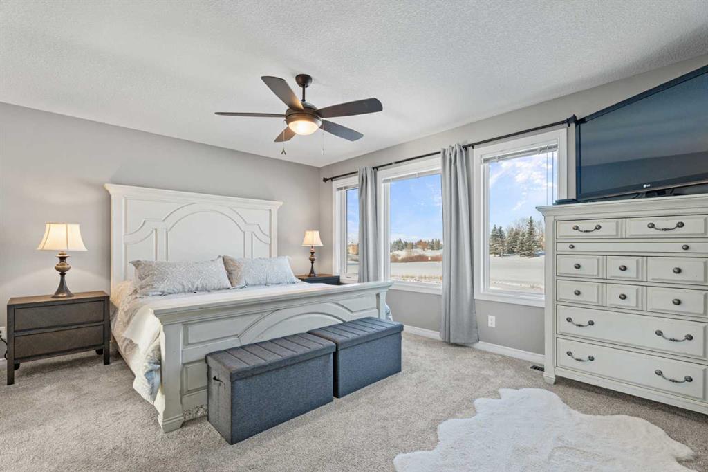 Upstairs, the layout is both functional and inviting. The primary retreat captures stunning west-facing views, complete with a luxurious 5-piece ensuite and walk-in closet. The bonus room, with vaulted ceilings and positioned at the back of the home, offers a perfect place to relax while taking in the same incredible scenery, from inside or on the balcony, morning, noon, or sunset. Laundry days are easier here as you will find the laundry room right at the top of the stairs.