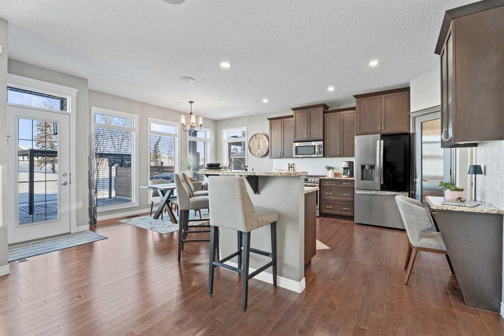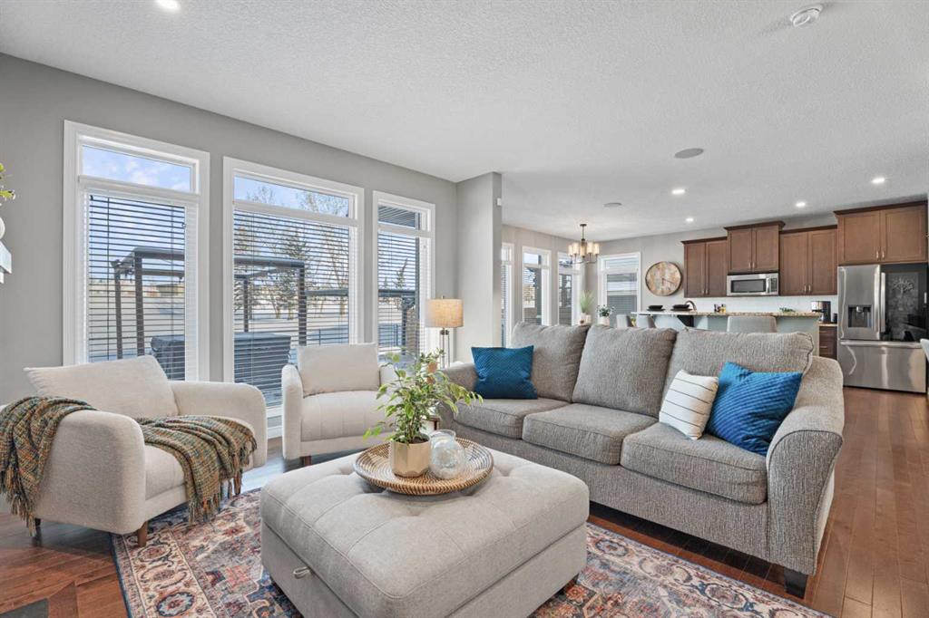 This truly exceptional, meticulously maintained two-storey, 3 bedroom home in Okotoks backs directly onto the golf course, offering uninterrupted green space, wildlife, and views that include the mountains.